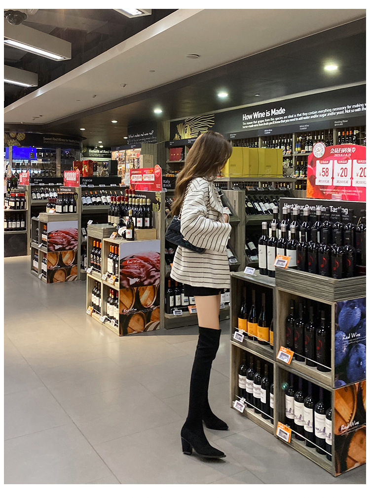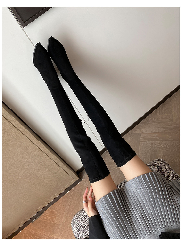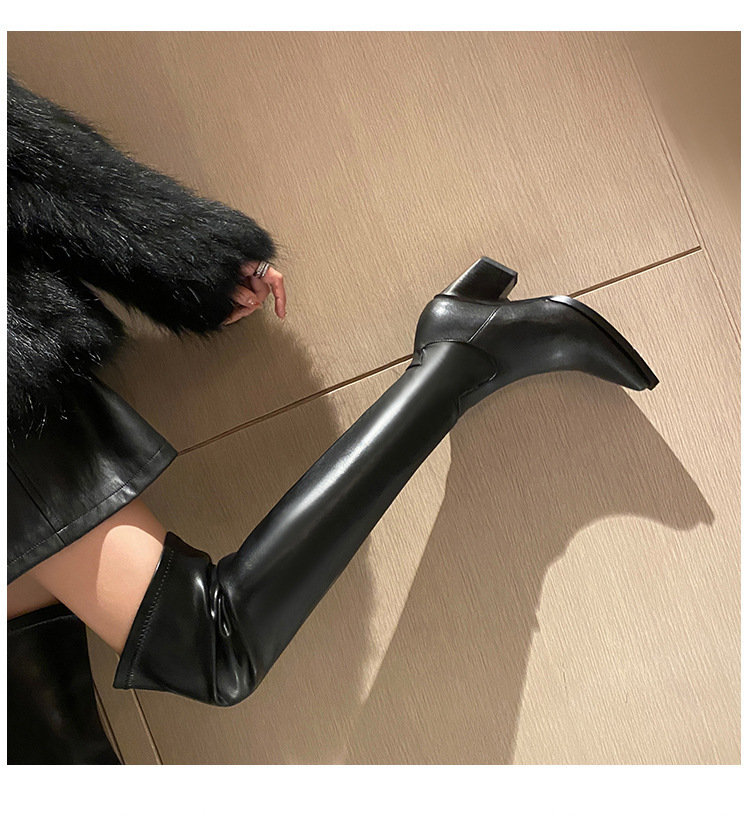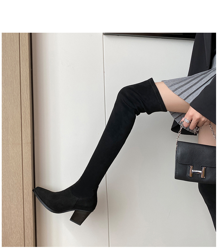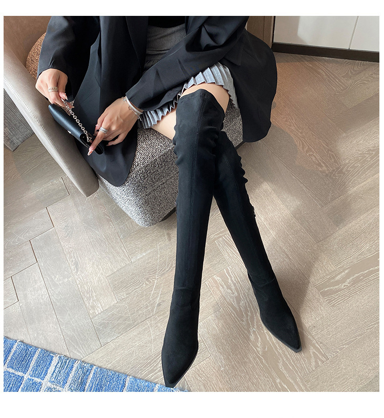블랙 오버 더 무릎 부츠 여성용 하이힐 통통녀 특허 가죽 두꺼운 다리 포인트 발가락 대형 튜브 스웨이드 부츠스토어 가기
