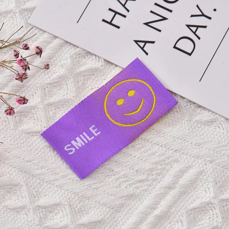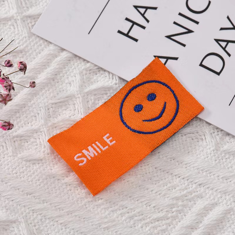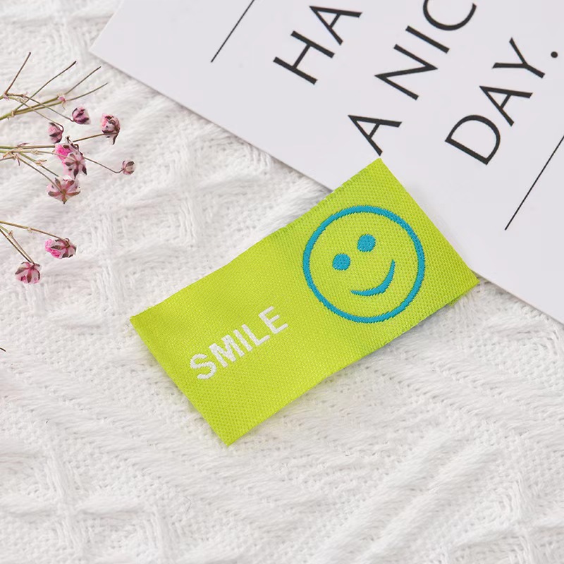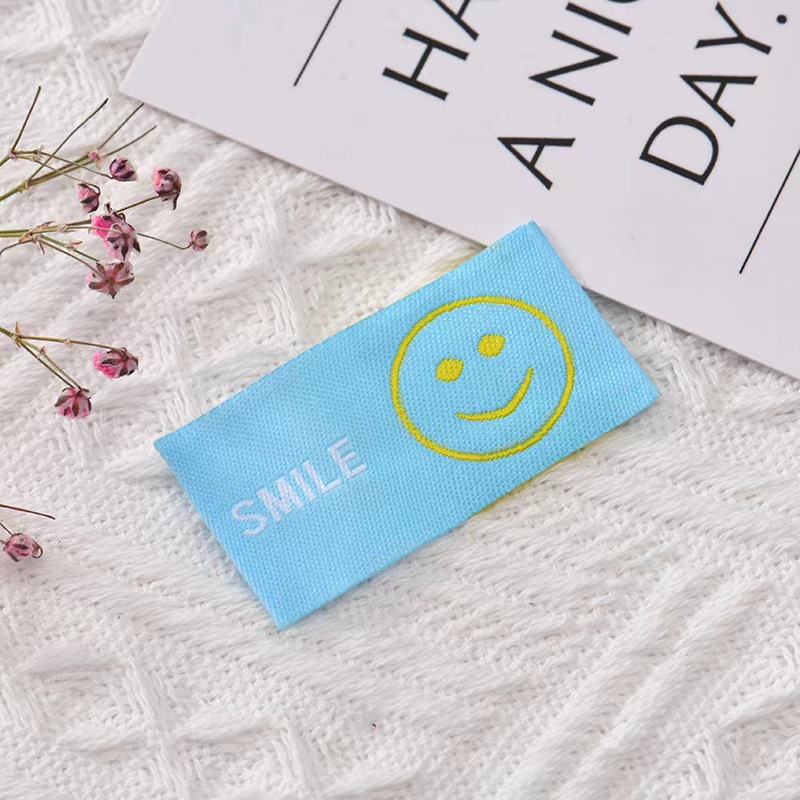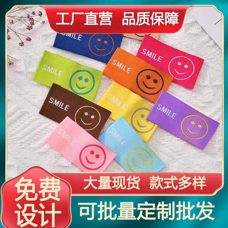 컬러풀한 트렌디한 스마일리 워싱 라벨 패브릭 스티커 아동복 라벨 스웨트셔츠 상표 만화 접이식 장식 라벨