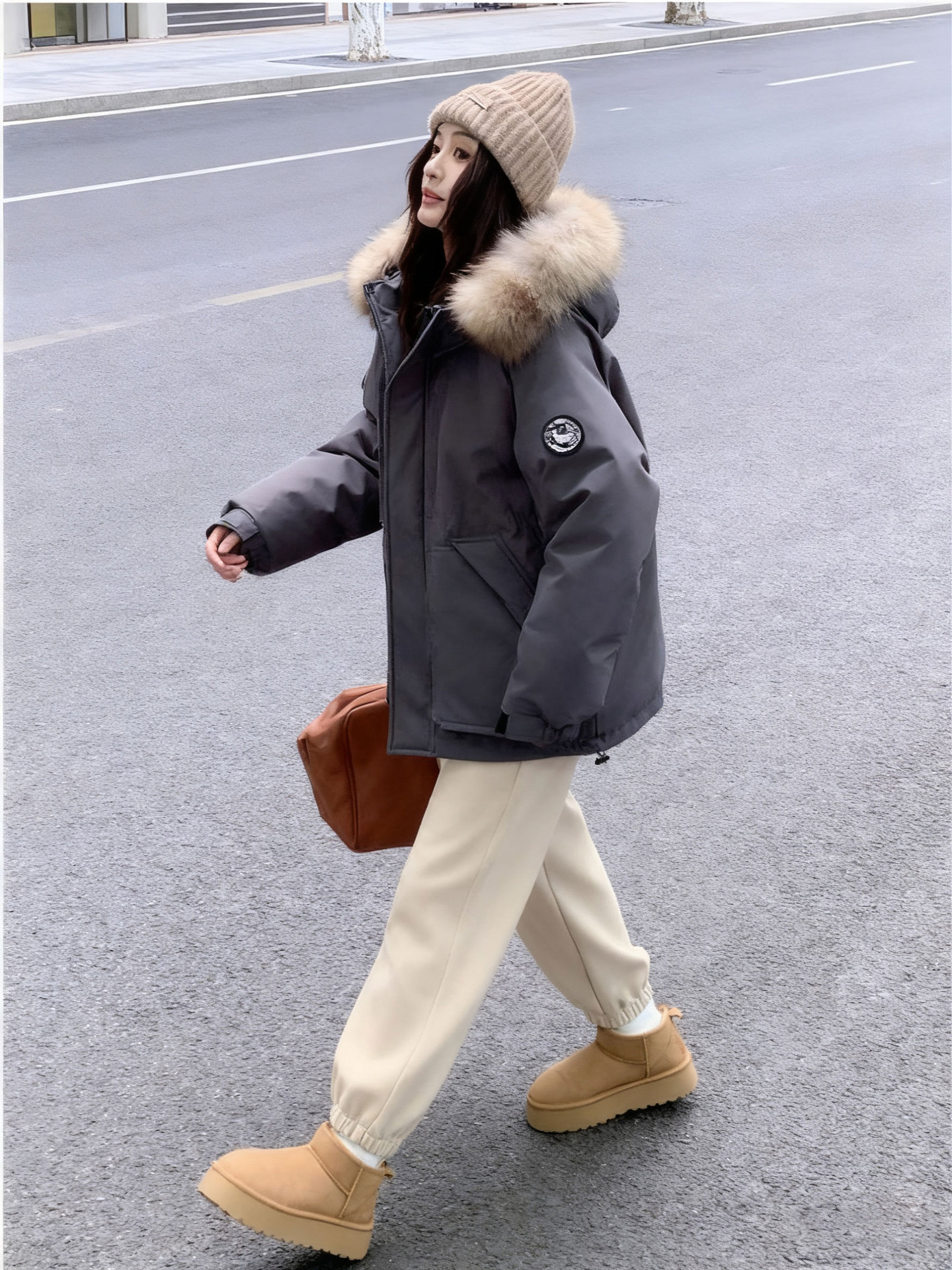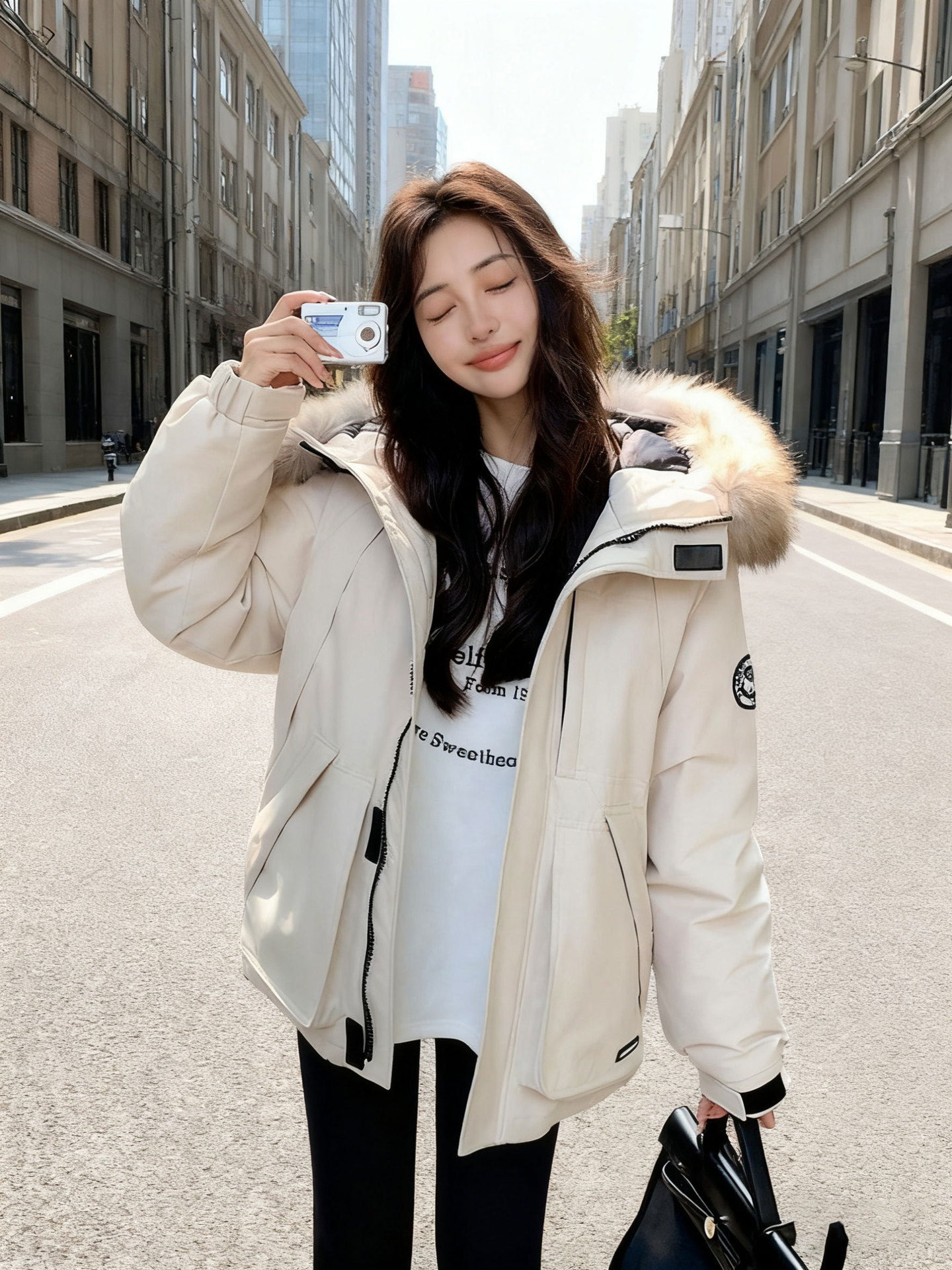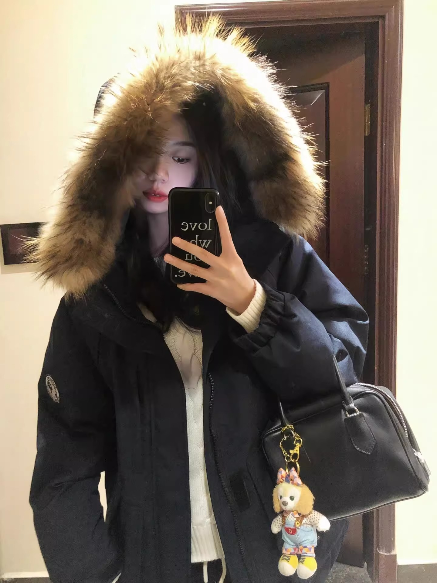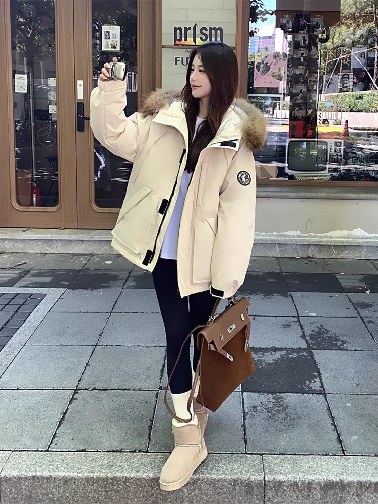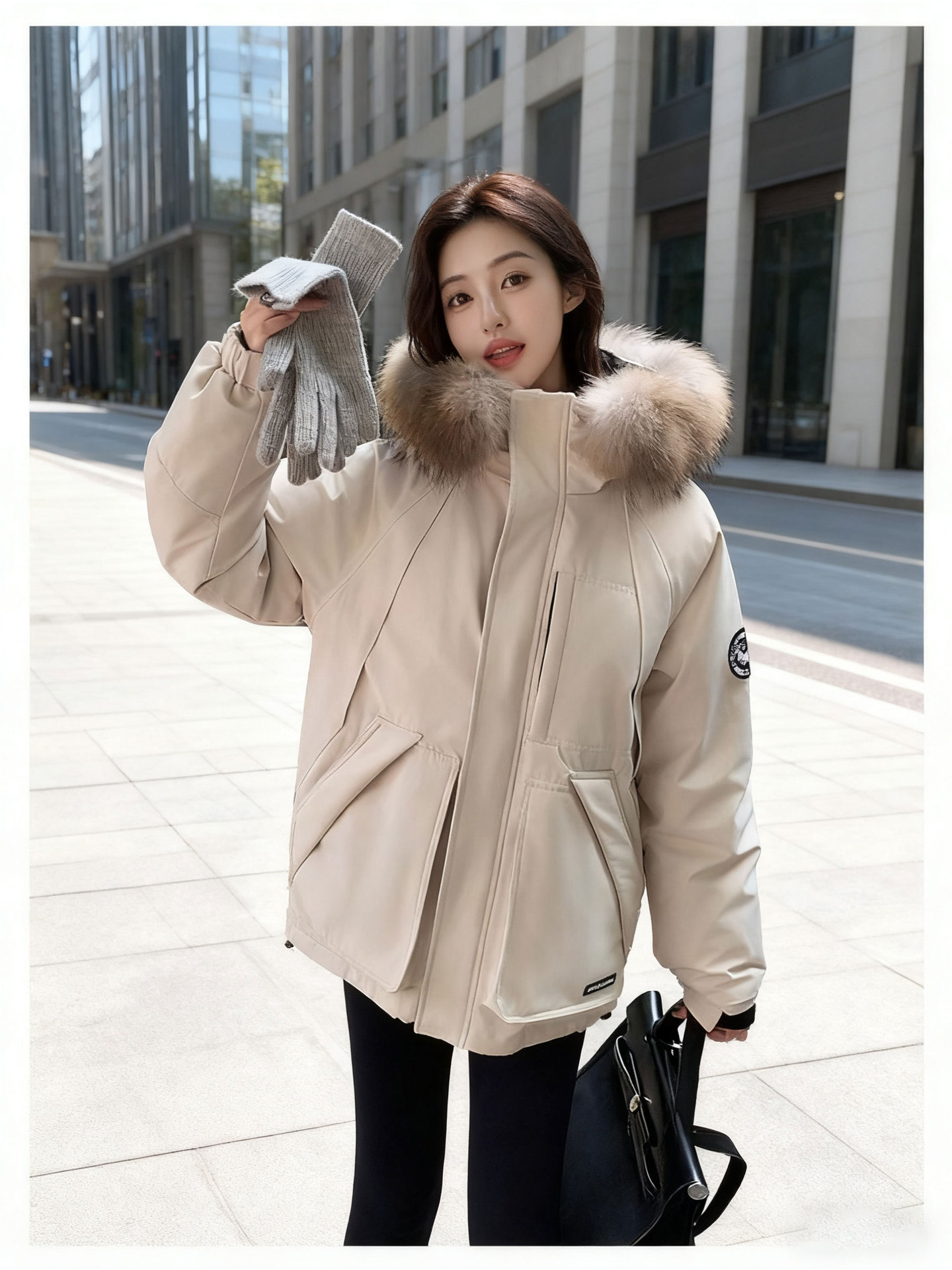 큰 모피 칼라가 있는 여성용 다운 재킷, 2025 겨울 짧은 두꺼운 한국식 캐주얼 따뜻한 여성용 다운 재킷스토어 가기