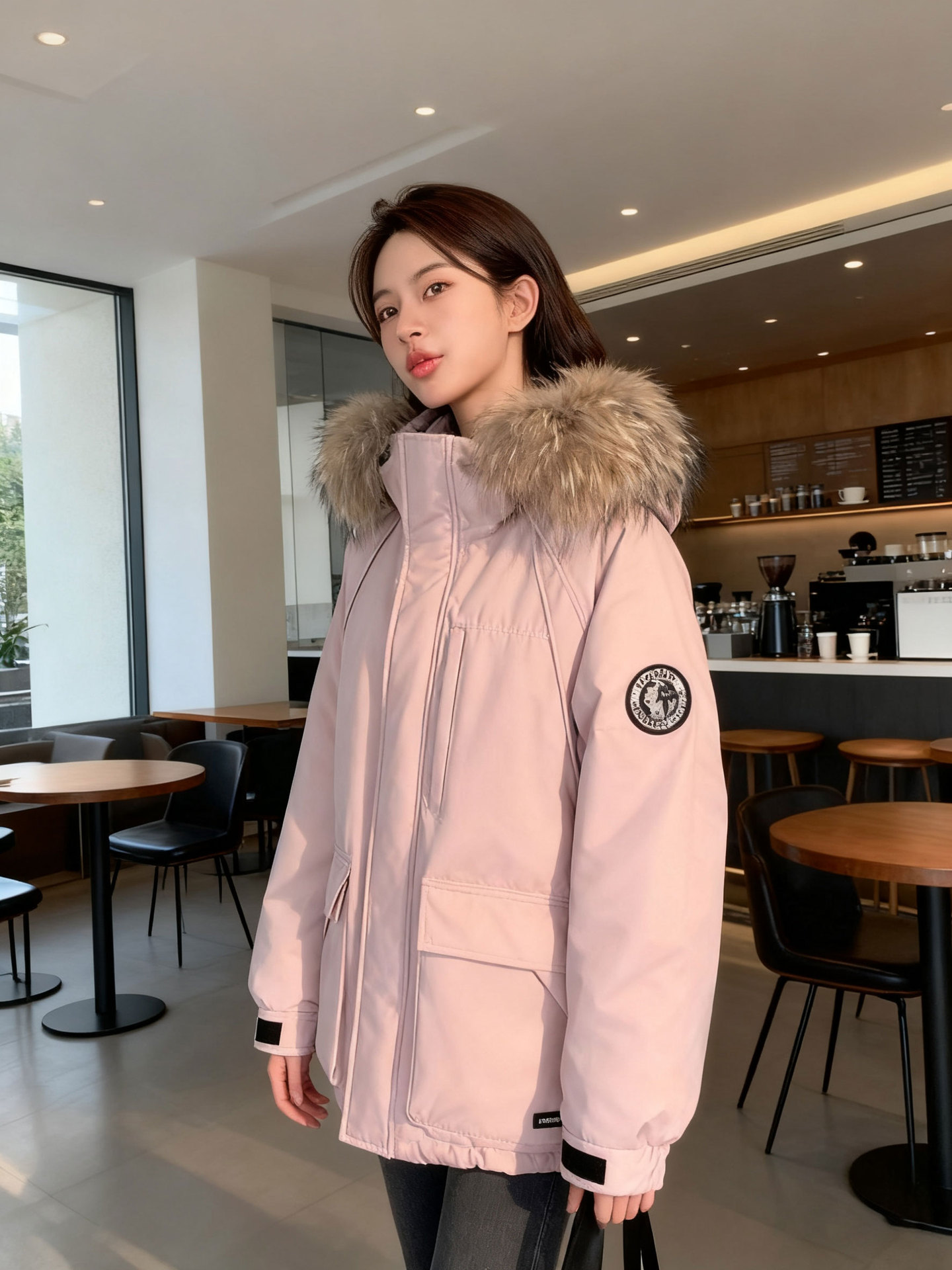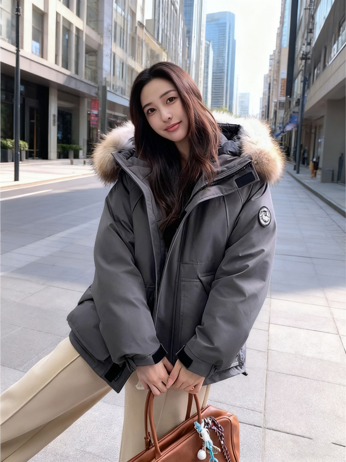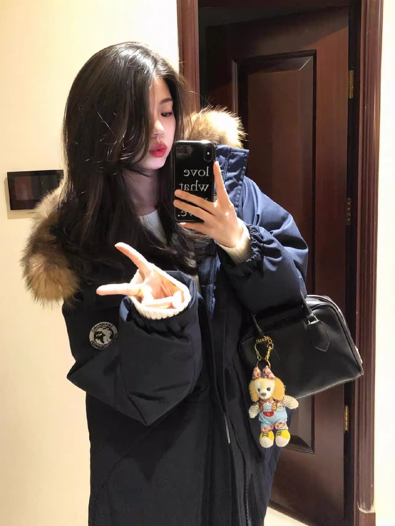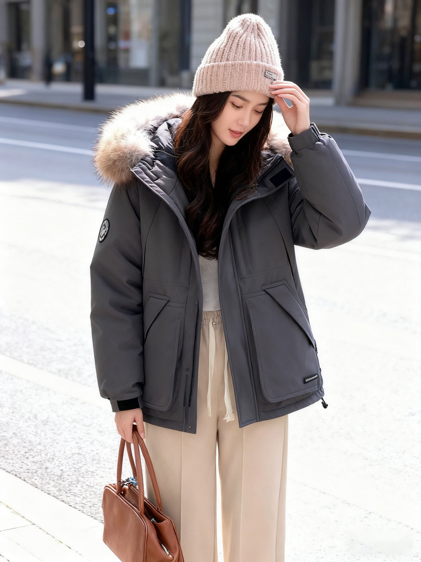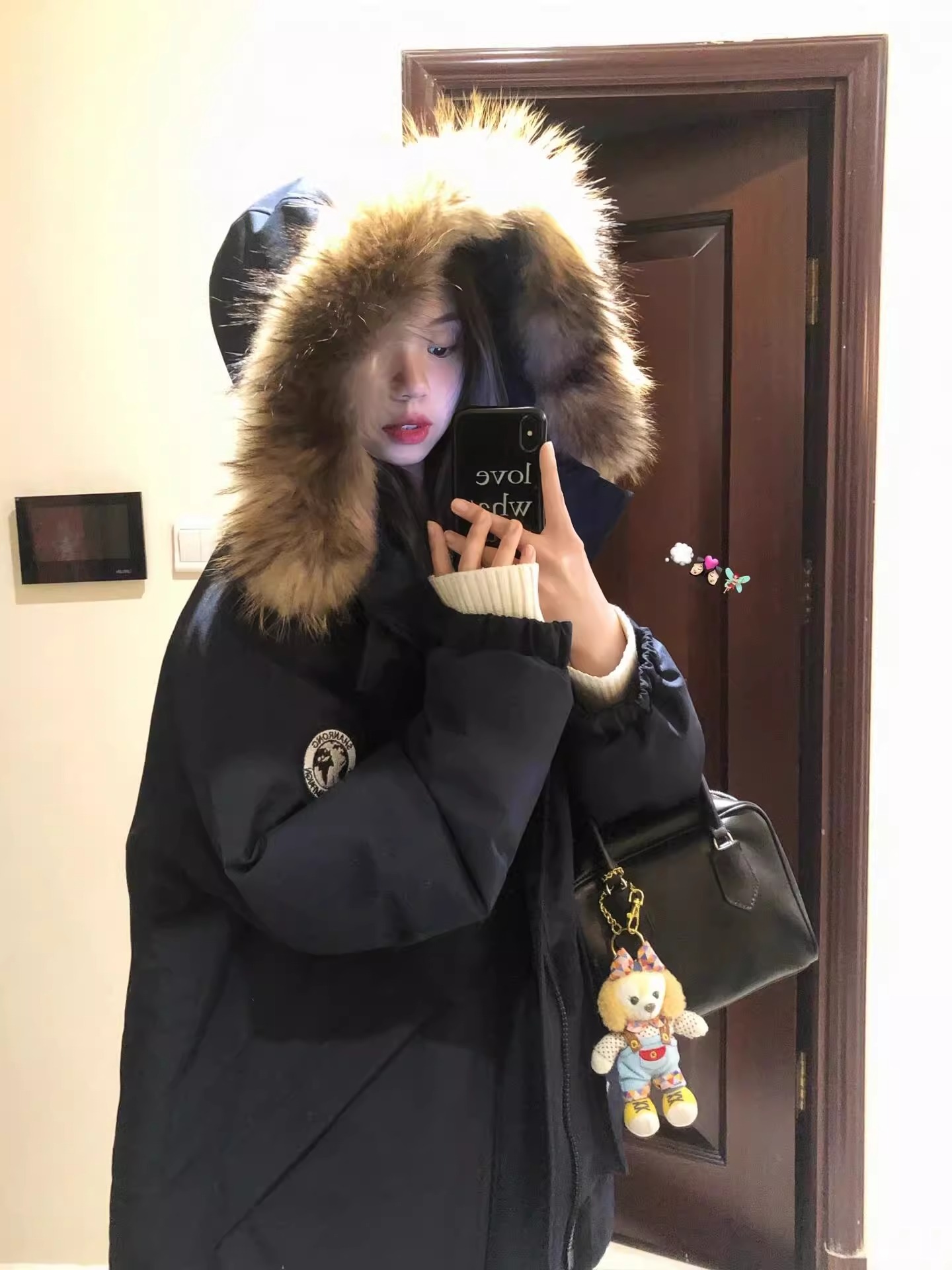 큰 모피 칼라가 있는 여성용 다운 재킷, 2025 겨울 짧은 두꺼운 한국식 캐주얼 따뜻한 여성용 다운 재킷스토어 가기