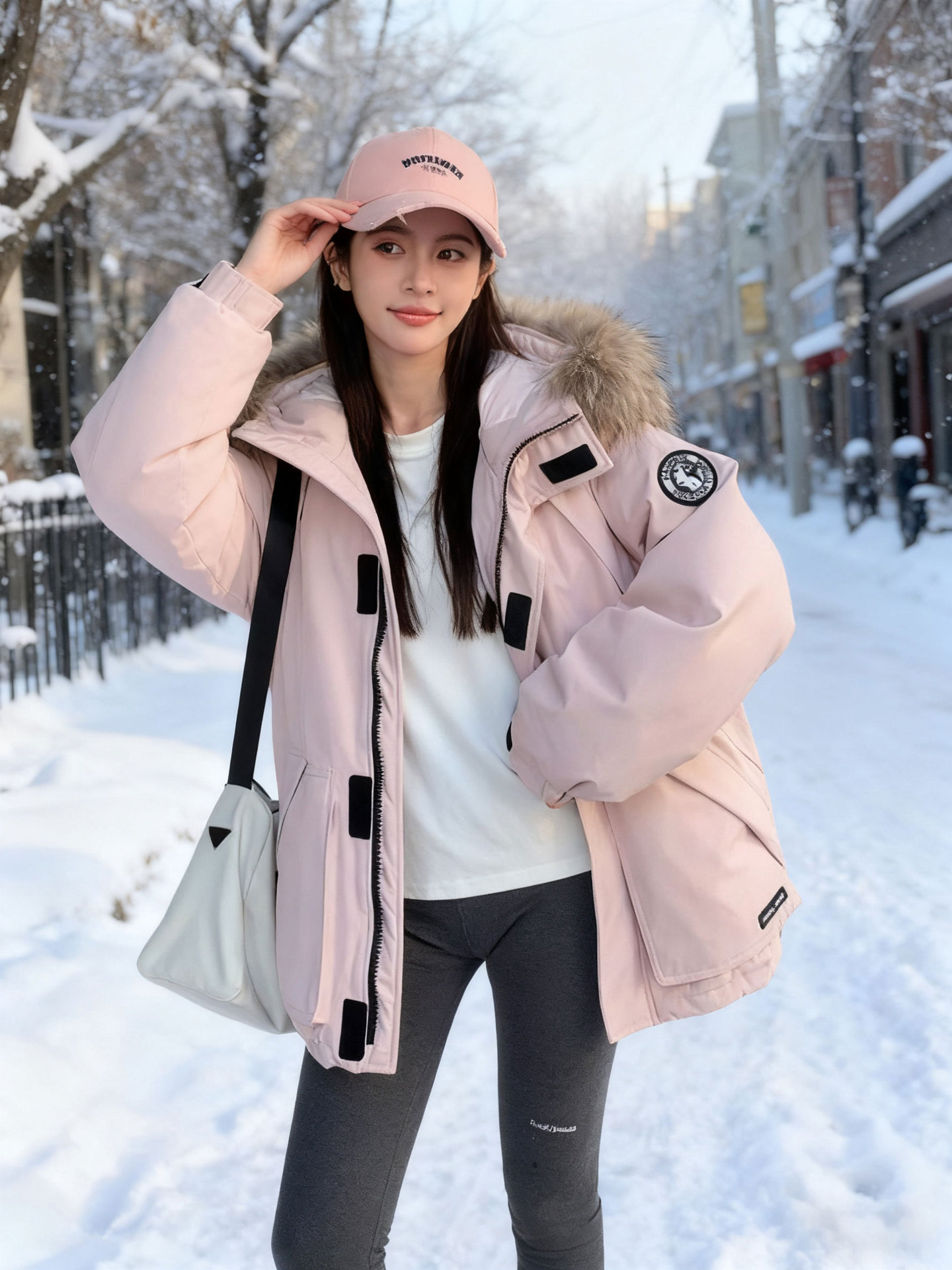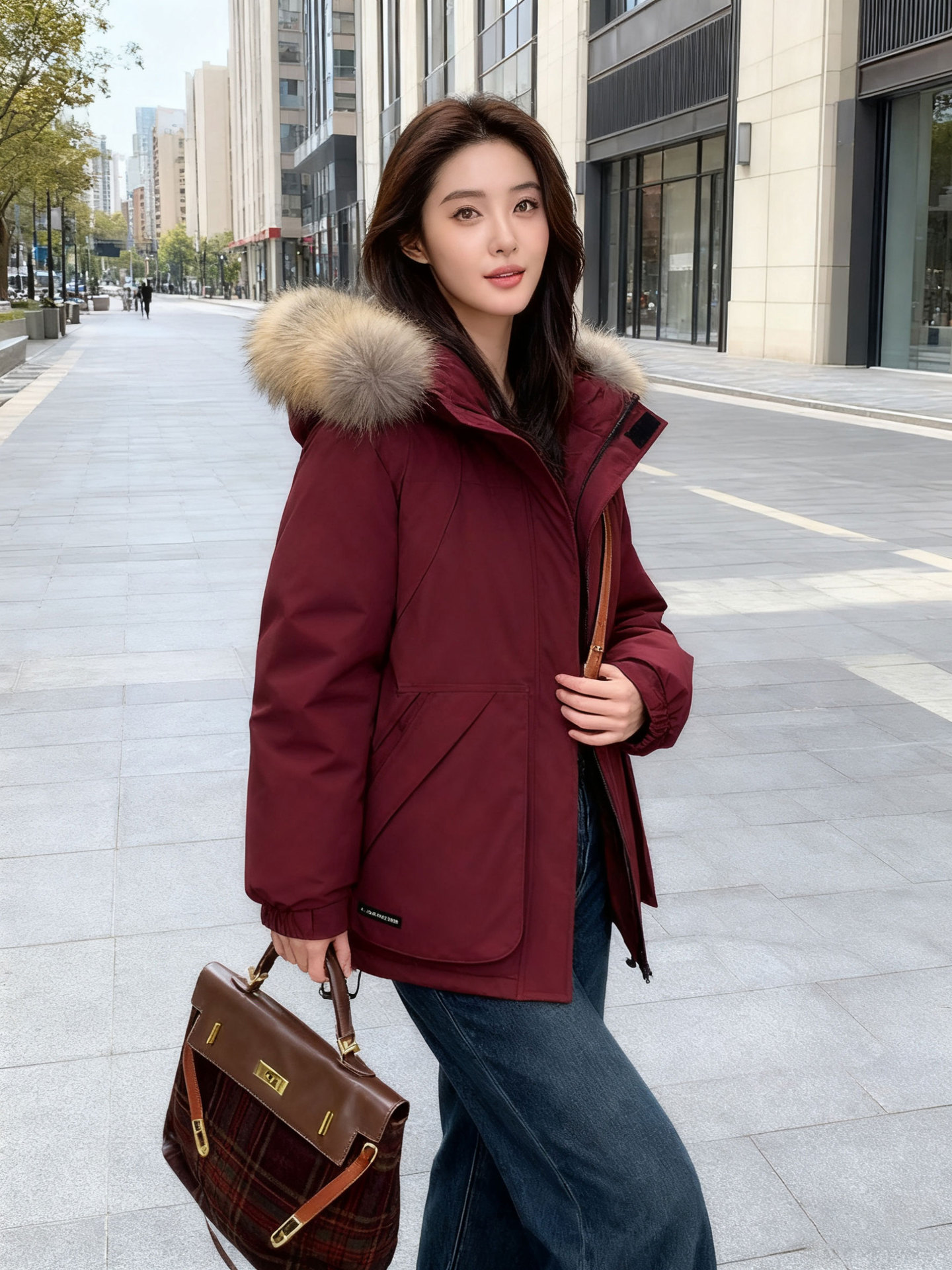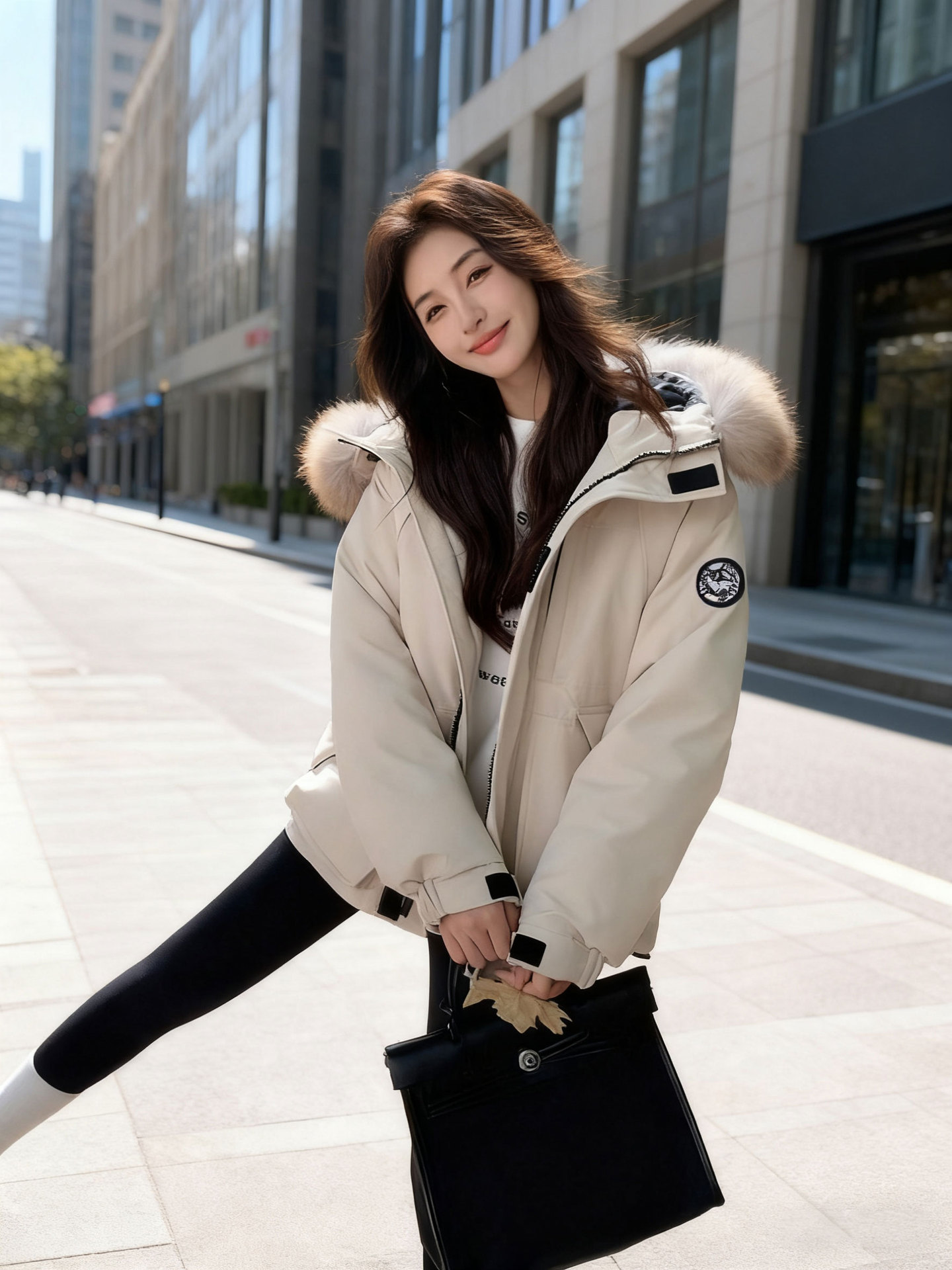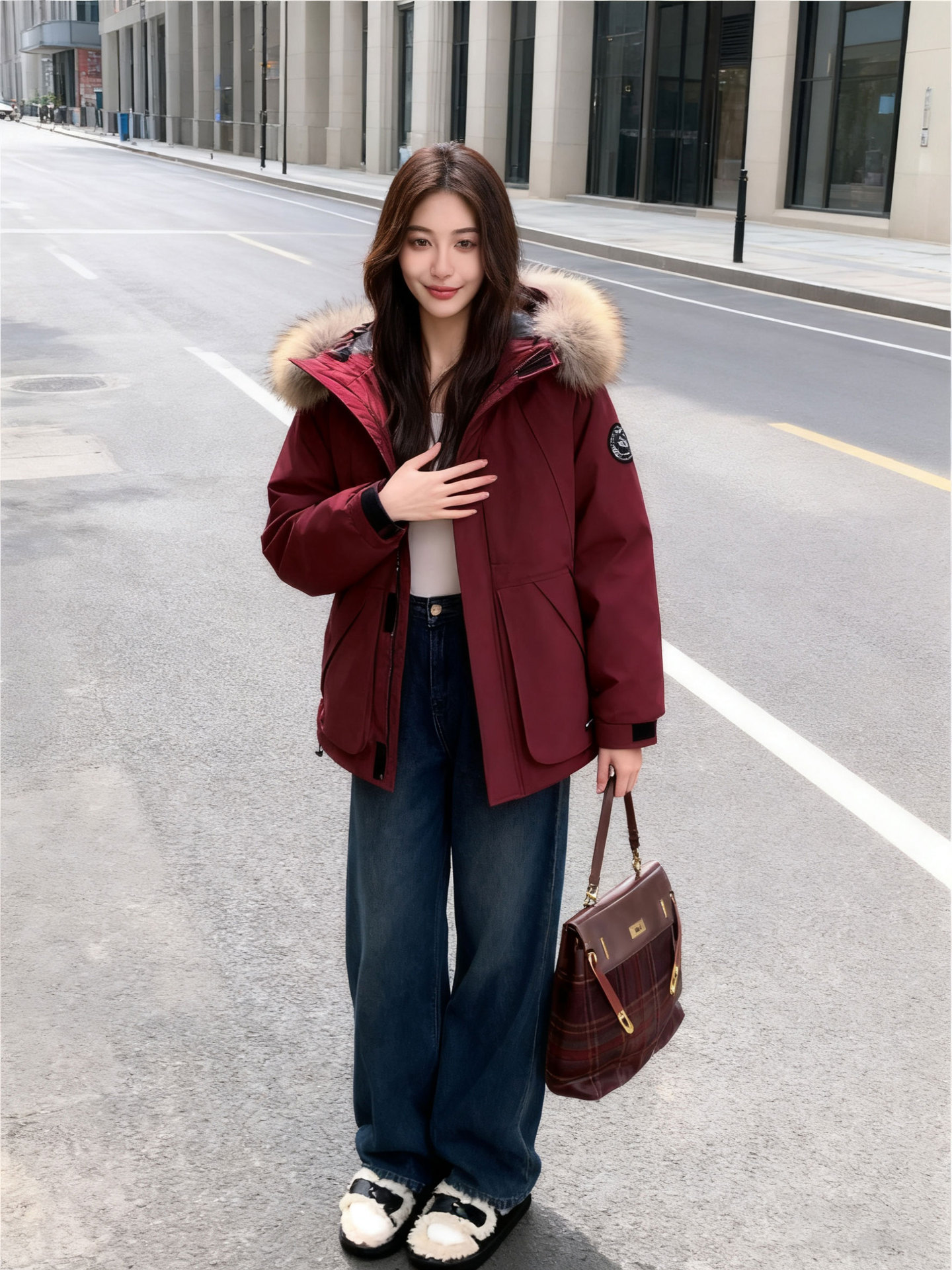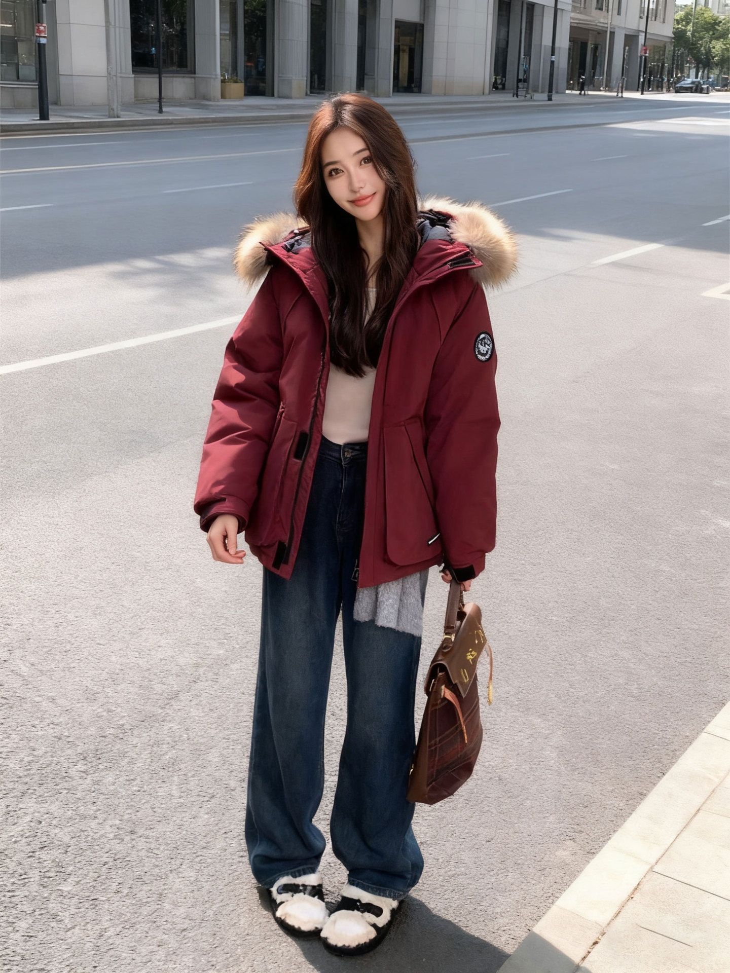 큰 모피 칼라가 있는 여성용 다운 재킷, 2025 겨울 짧은 두꺼운 한국식 캐주얼 따뜻한 여성용 다운 재킷스토어 가기