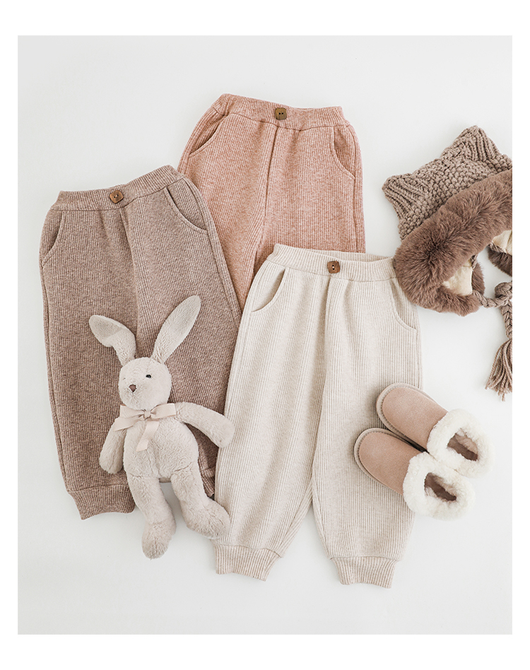 Wuri Boo Girls 기모 두꺼운 니트 핏 바지 겨울 새 어린이 따뜻한 캐주얼 다리 바지