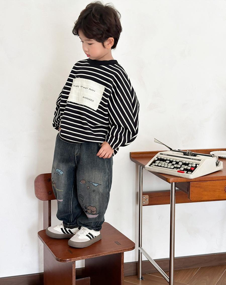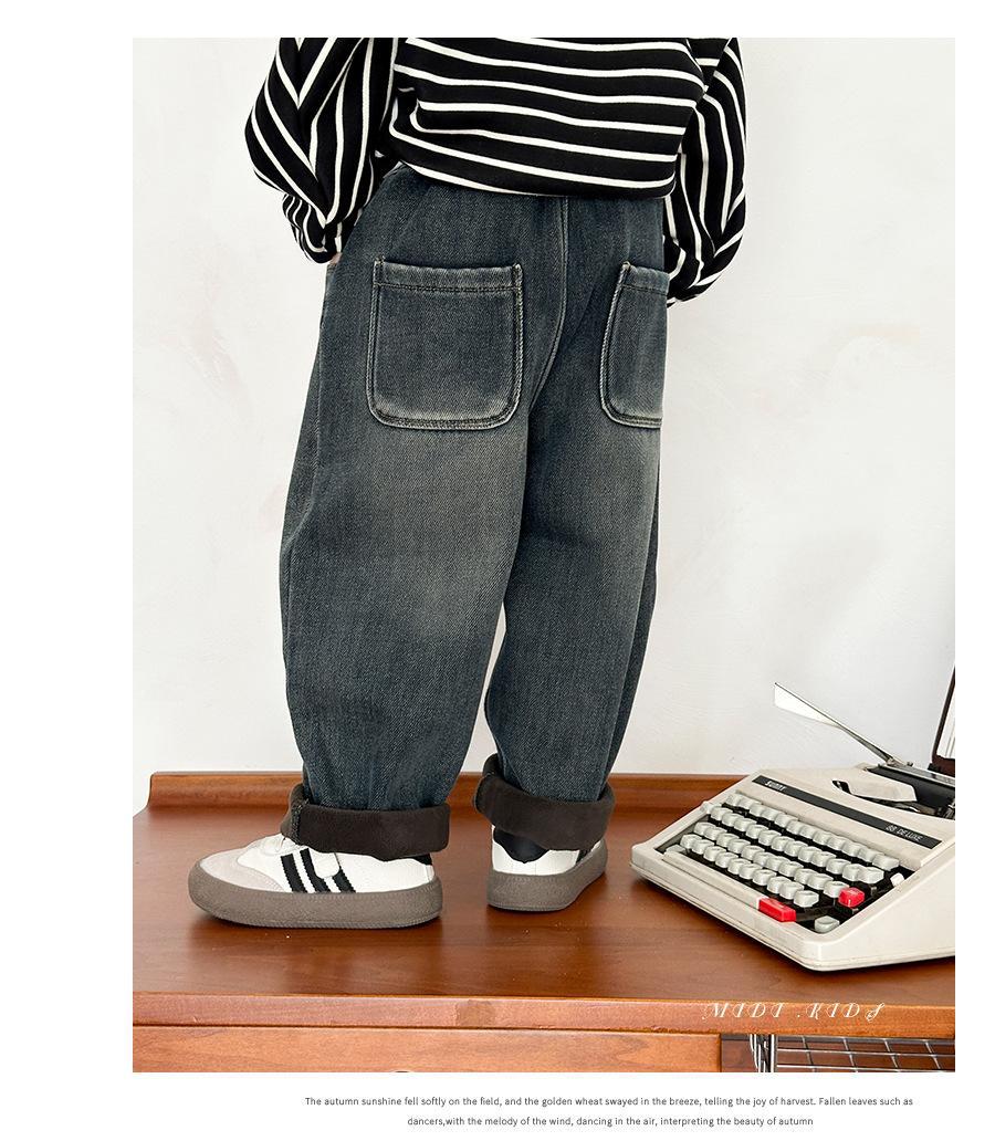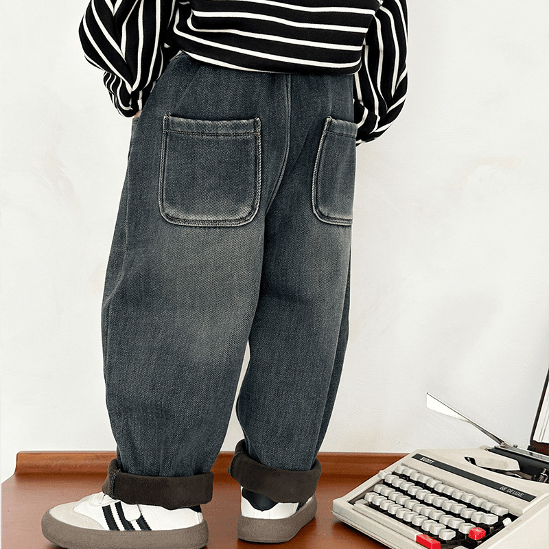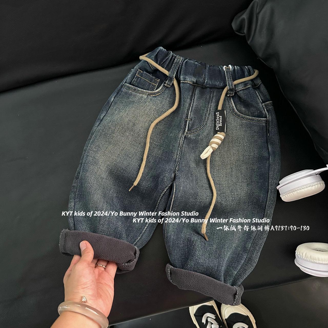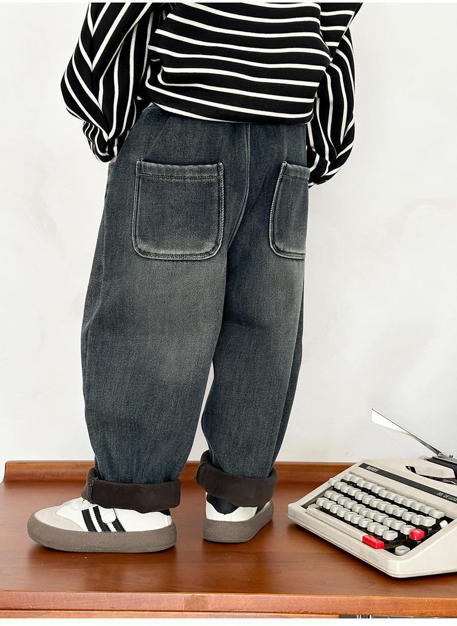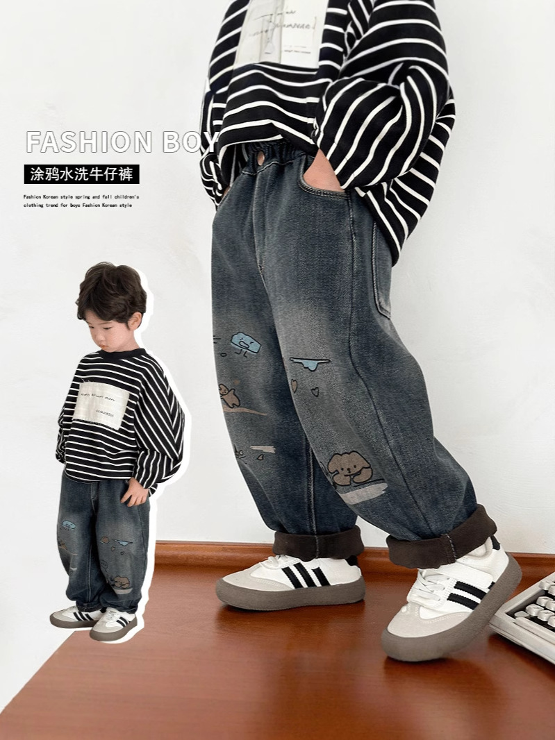 남아용 기모 데님 팬츠 가을 겨울 2025 신상 아동용 스타일리시 그래피티 두꺼운 긴바지 호주직물 아동복스토어 가기