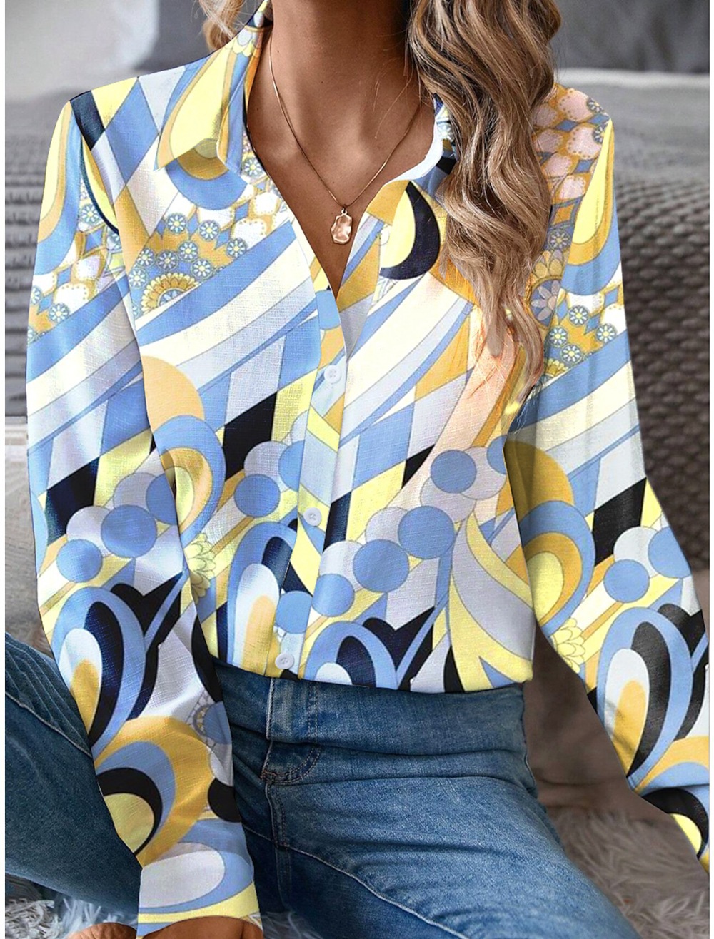 2024 AliExpress 새로운 다채로운 기하학적 인쇄 3D 디지털 우아한 통근 카디건 셔츠 블라우스 탑스토어 가기