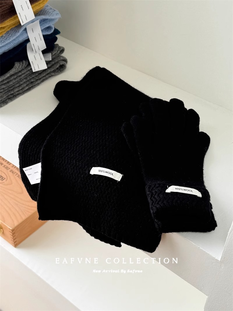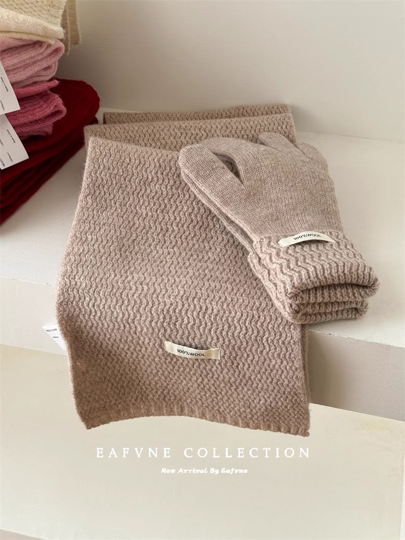 높은 버전 100 호주 양 양모 스카프 여성의 가을과 겨울 골판지 장갑 2 조각 세트 세트 따뜻한 목스토어 가기