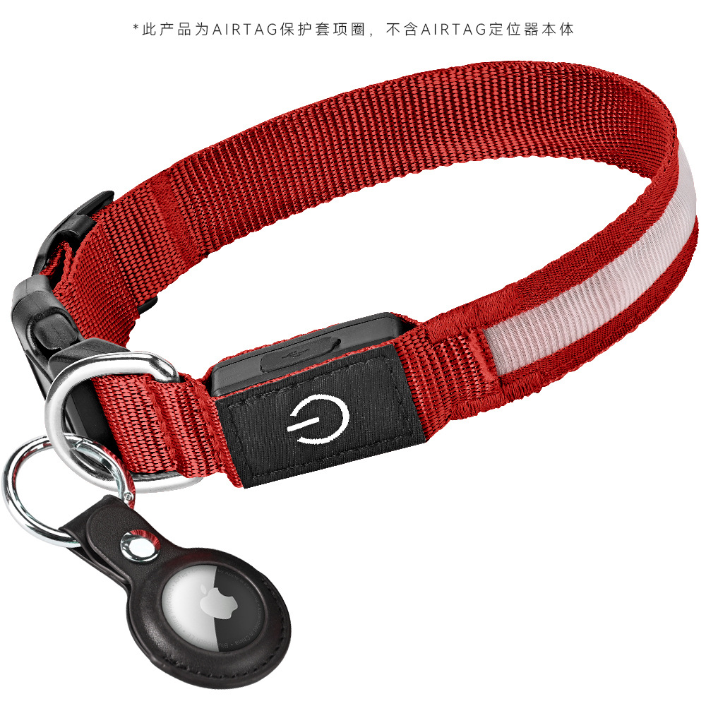 방수 에어태그 위치 추적기 케이스 LED 애완 동물 빛나는 나일론 물고기 와이어 칼라 USB 충전스토어 가기
