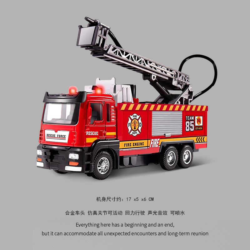 • 빛과 음향 효과가 있고 물을 뿌릴 수 있는 합금 소방 사다리 트럭(합금 전면)