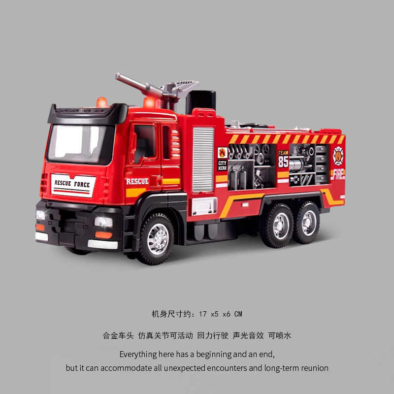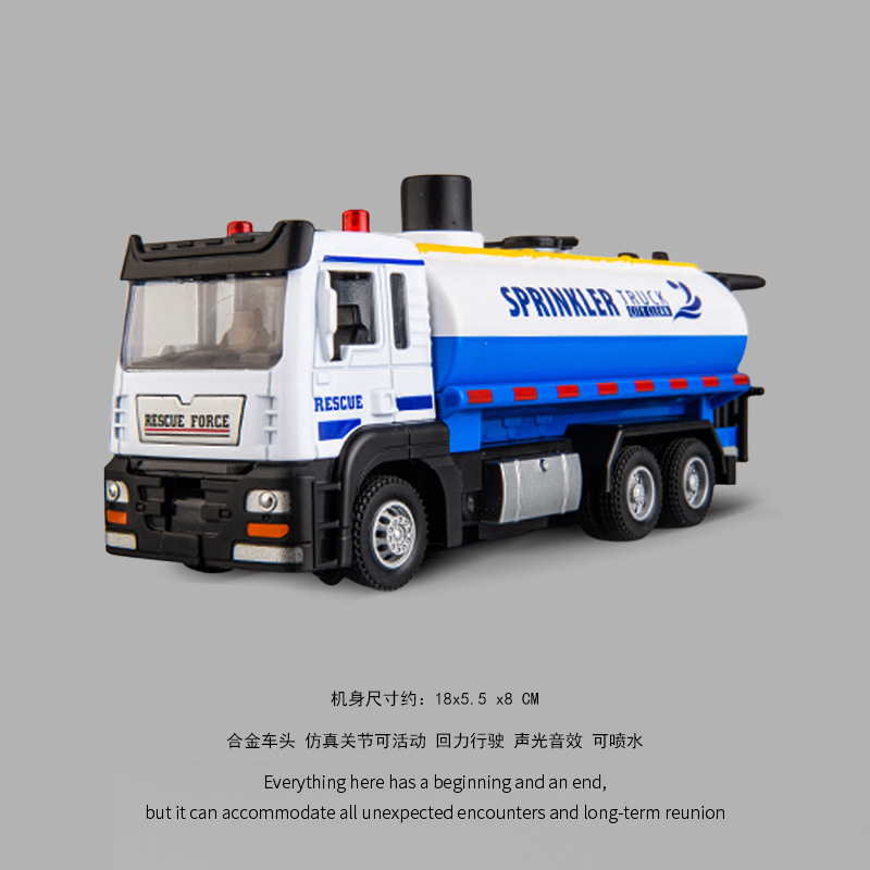 • 조명 및 음향 효과가 있는 합금 도시 물 탱크 트럭(합금 전면)은 물을 뿌릴 수 있습니다.