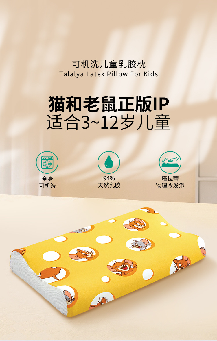 • 톰 앤 제리 어린이용 라텍스 베개 - 폴카 도트 옐로우