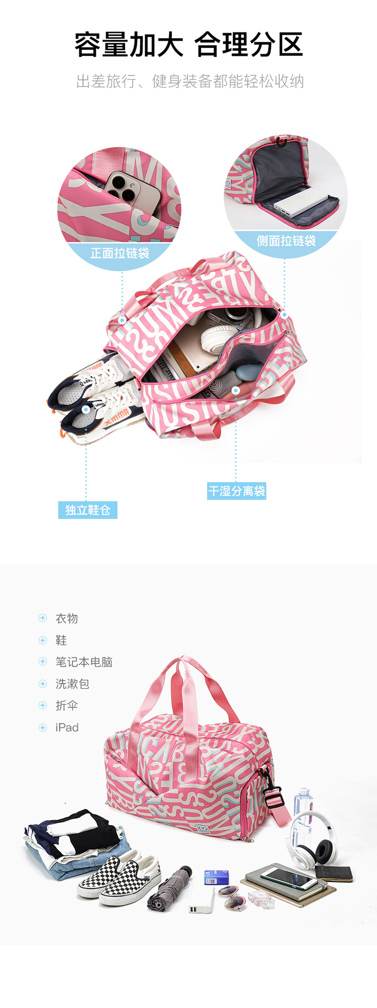 요가 스포츠 가방 여성용 피트니스 가방 여성용 건식 및 습식 분리 보관 확장 대용량 세련된 휴대용 크로스 바디 여행 가방스토어 가기