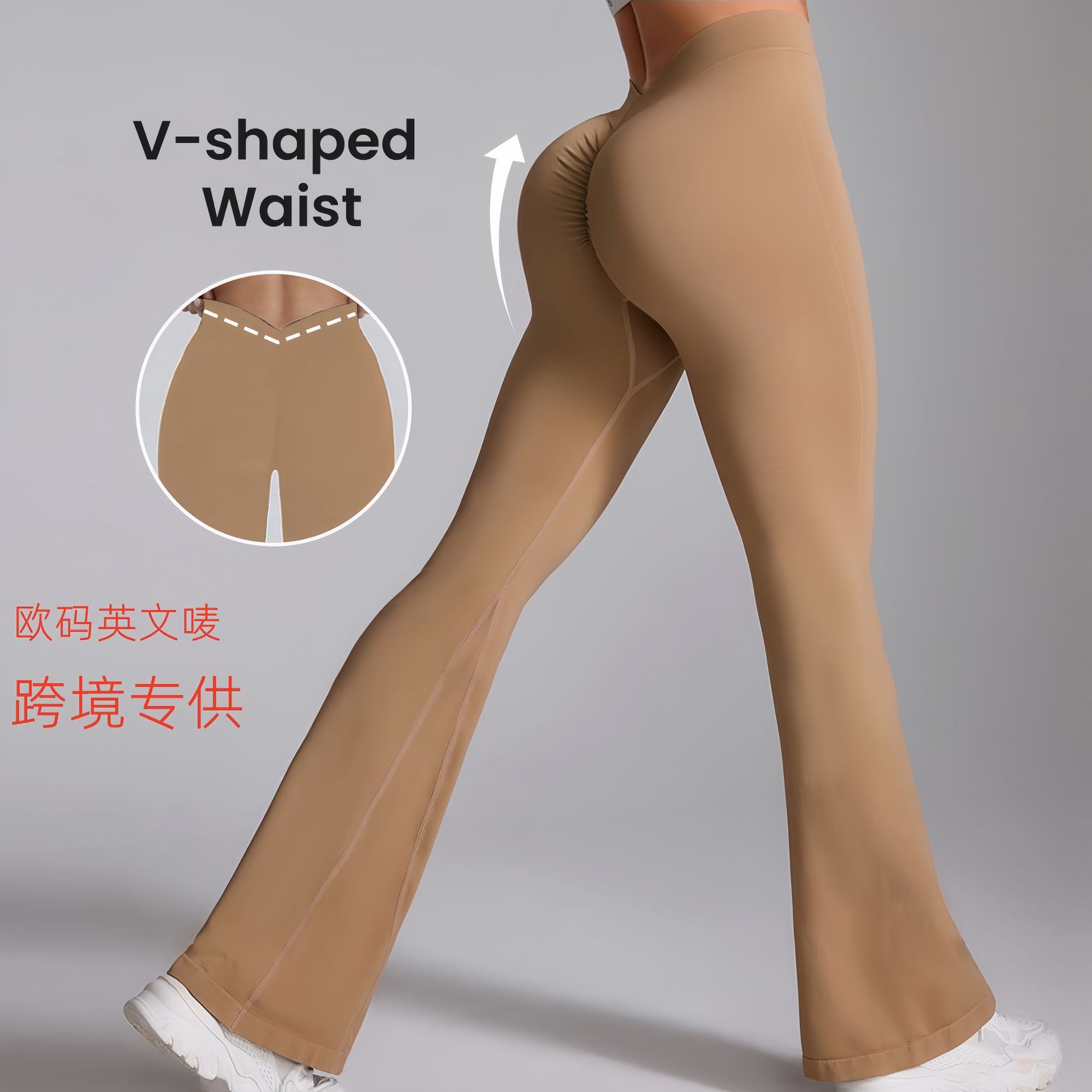 높은 허리 복부 유럽 및 미국 요가 바지 여성의 깊은 V 뿔 복숭아 엉덩이 스포츠 타이트 바지 높은 탄성 달리기 피트니스 바지