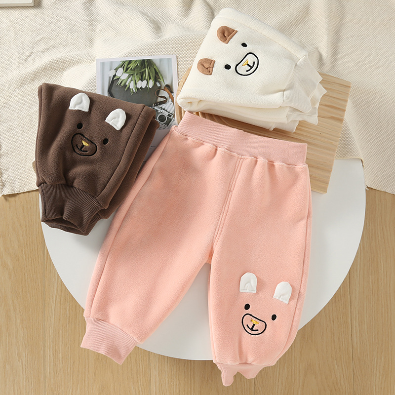 어린이 만화 기모 따뜻한 바지 아기 원피스 벨벳 바지 2024 새로운 소년과 소녀 외부 착용 캐주얼 바지스토어 가기