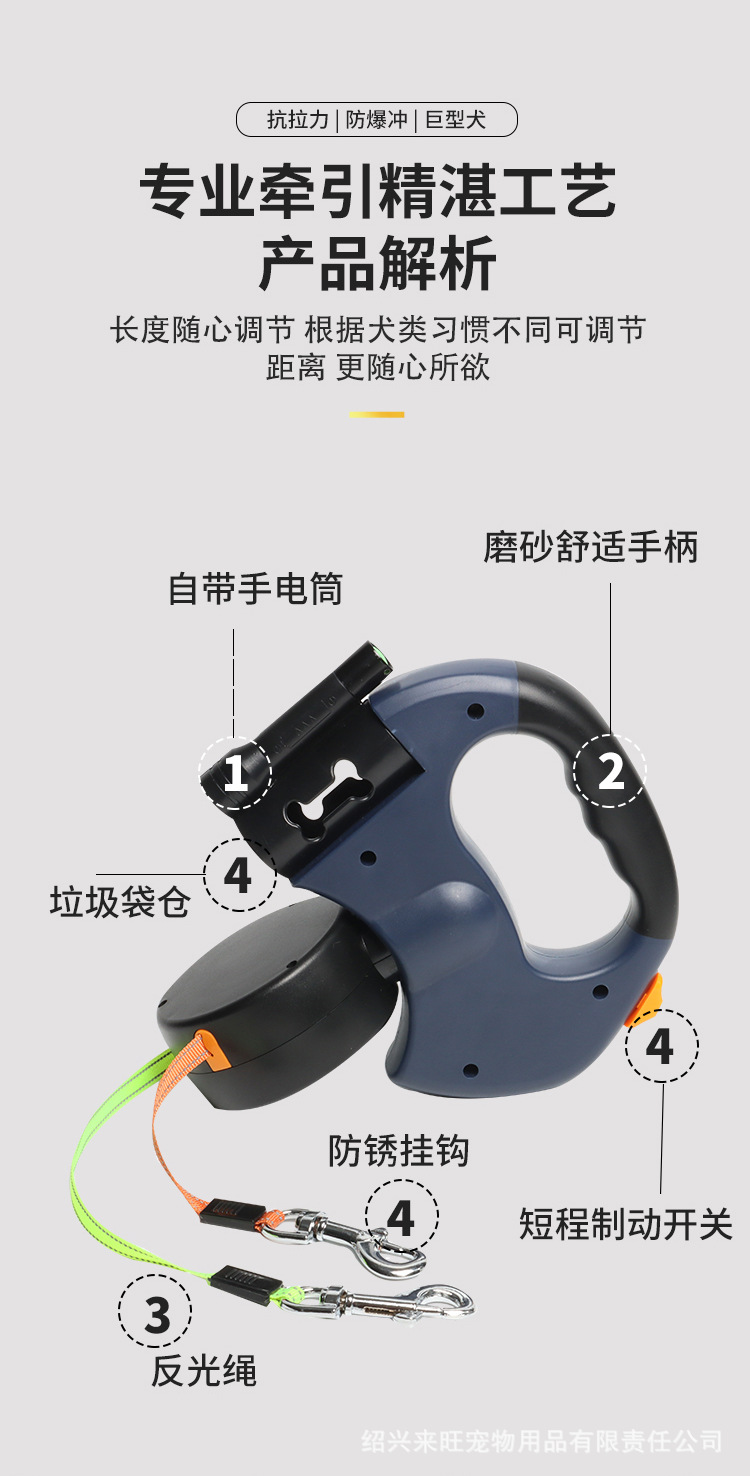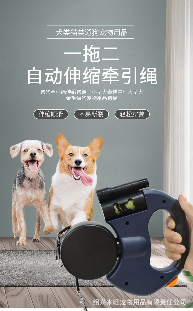 애완동물 1:2 자동 견인줄, 양방향 접이식 개줄, 개 견인 장치, 2-in-1 개 산책줄 제조업체