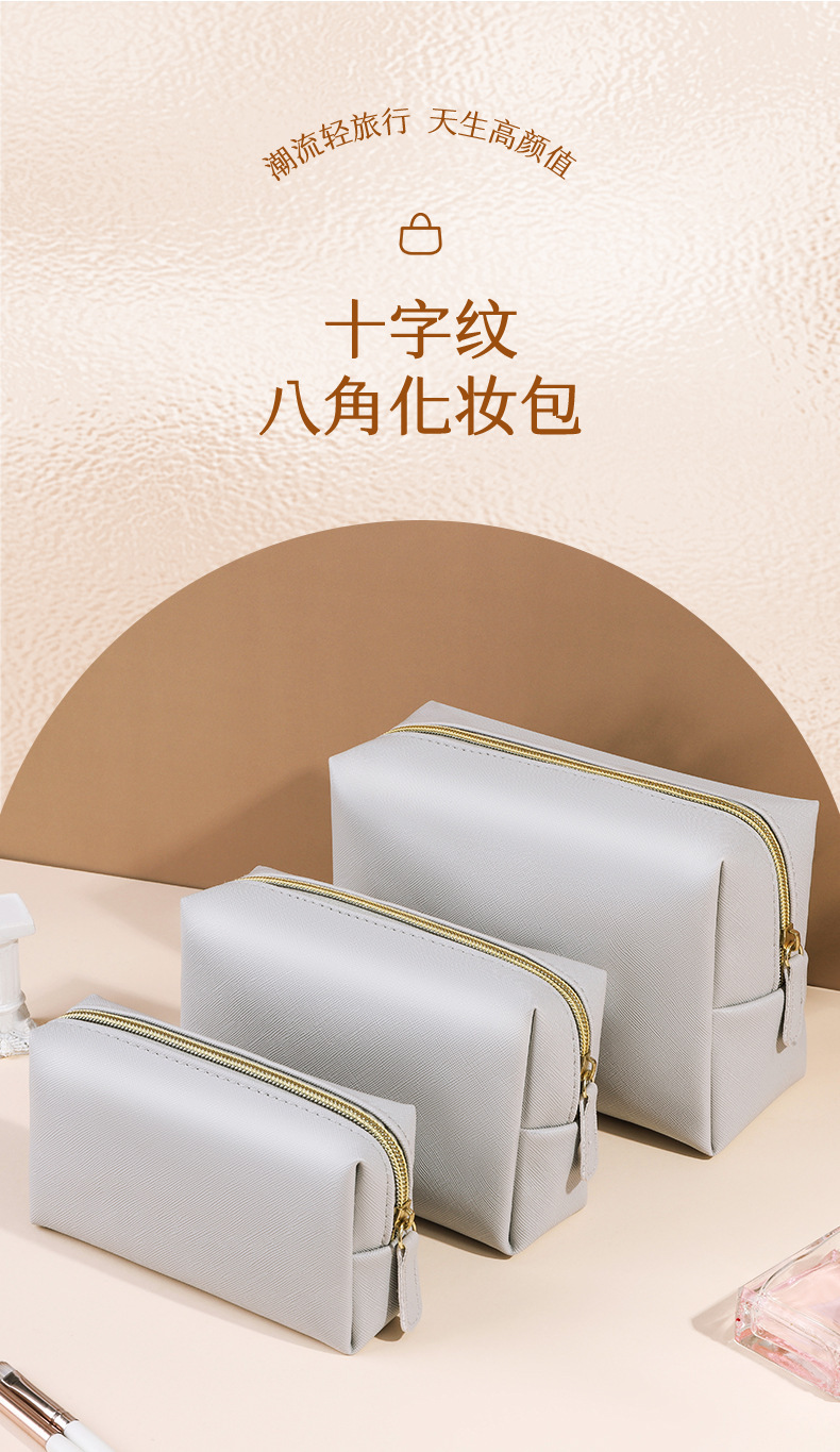 여성용 옥타곤 화장품 가방 여행 휴대용 PU 화장실 가방 대용량 간단한 방수 보관 가방 시작 배치