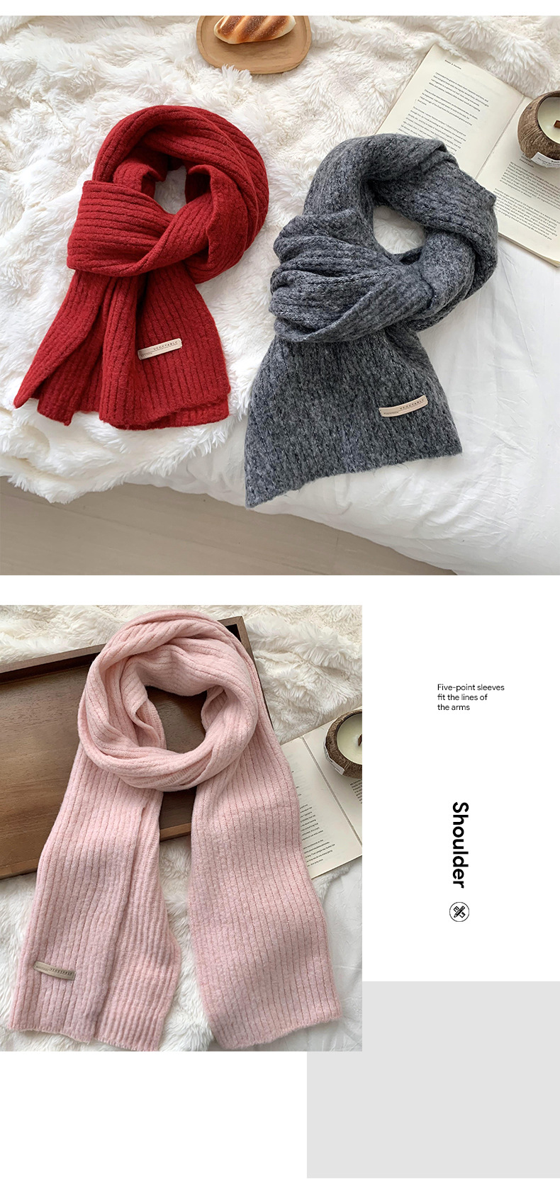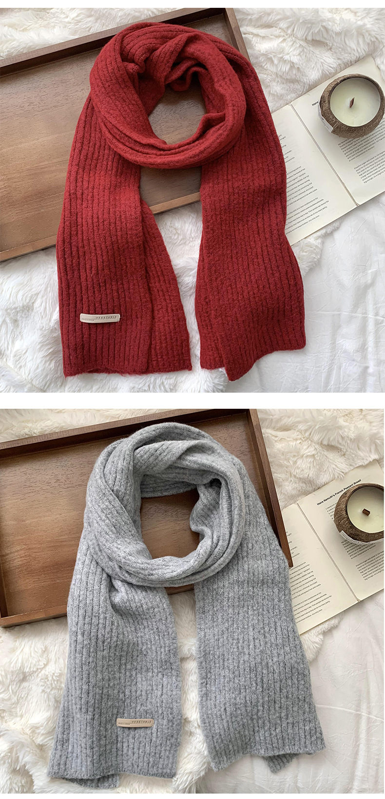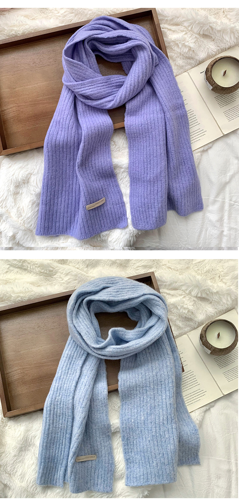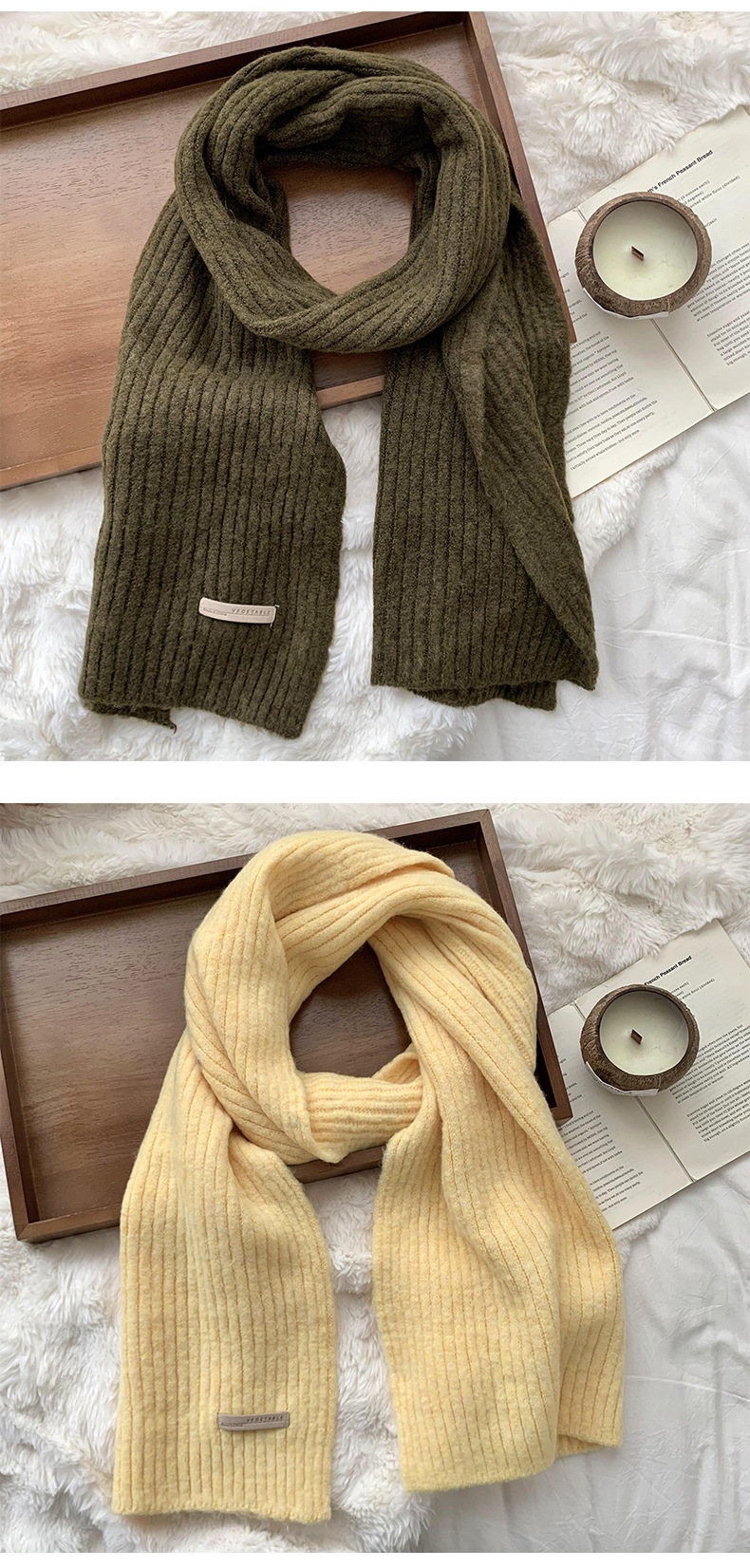 스카프 여성의 겨울 하이 엔드 2024 새로운 단색 울 모조 두꺼운 따뜻한 울 니트 스카프 도매