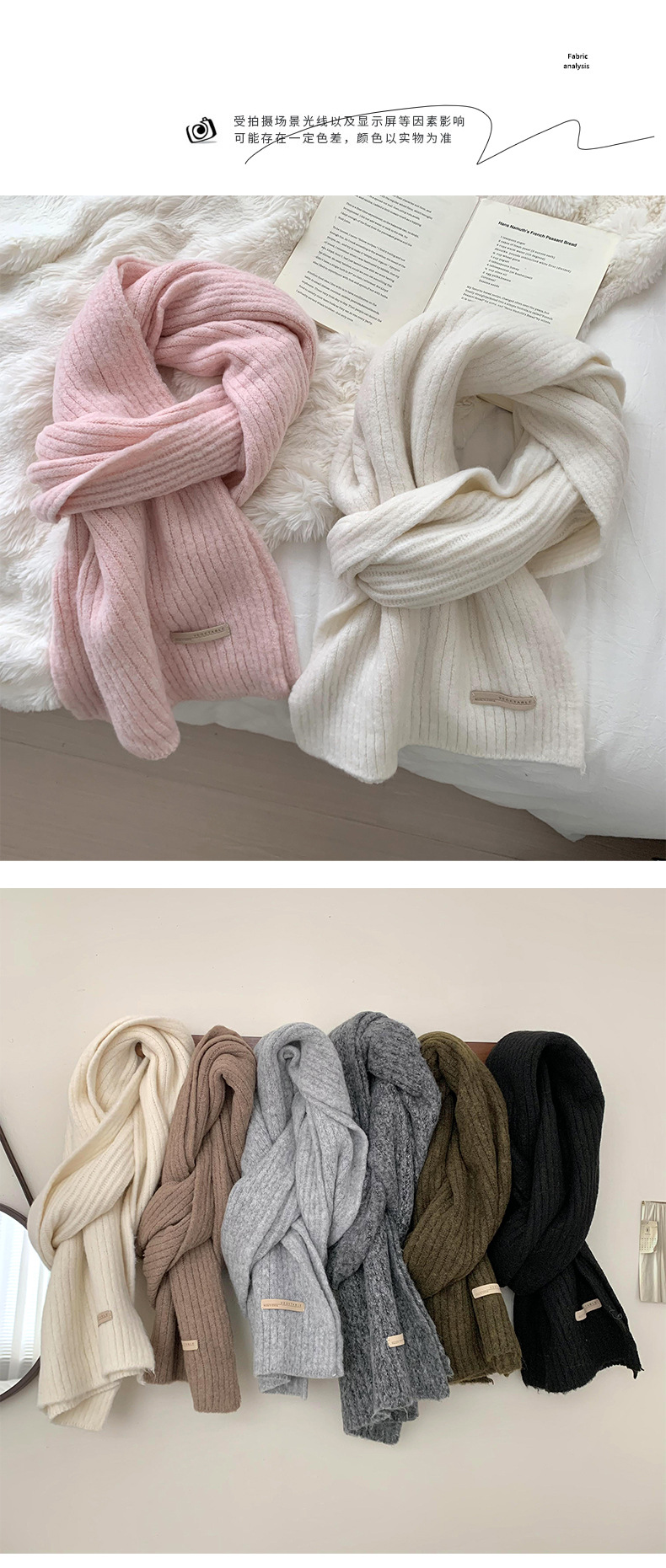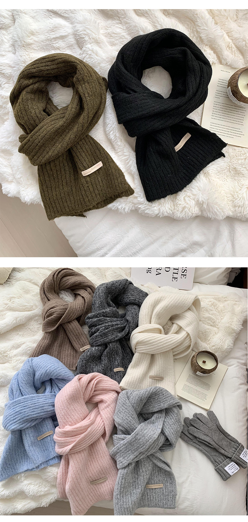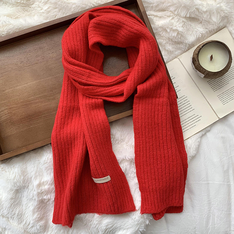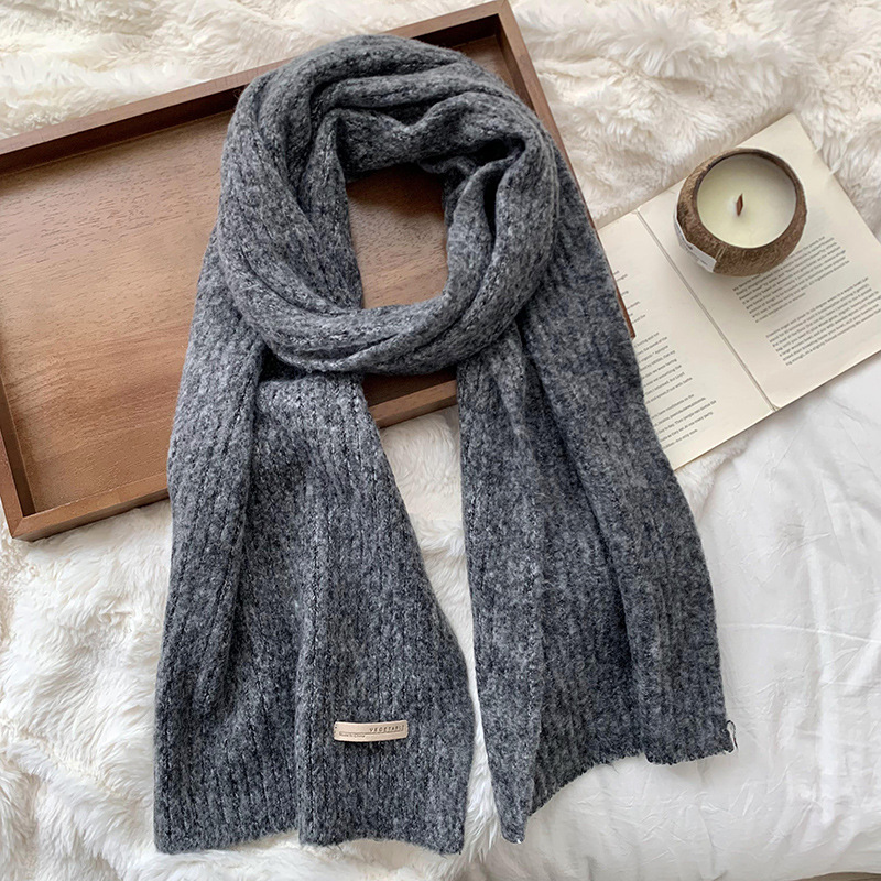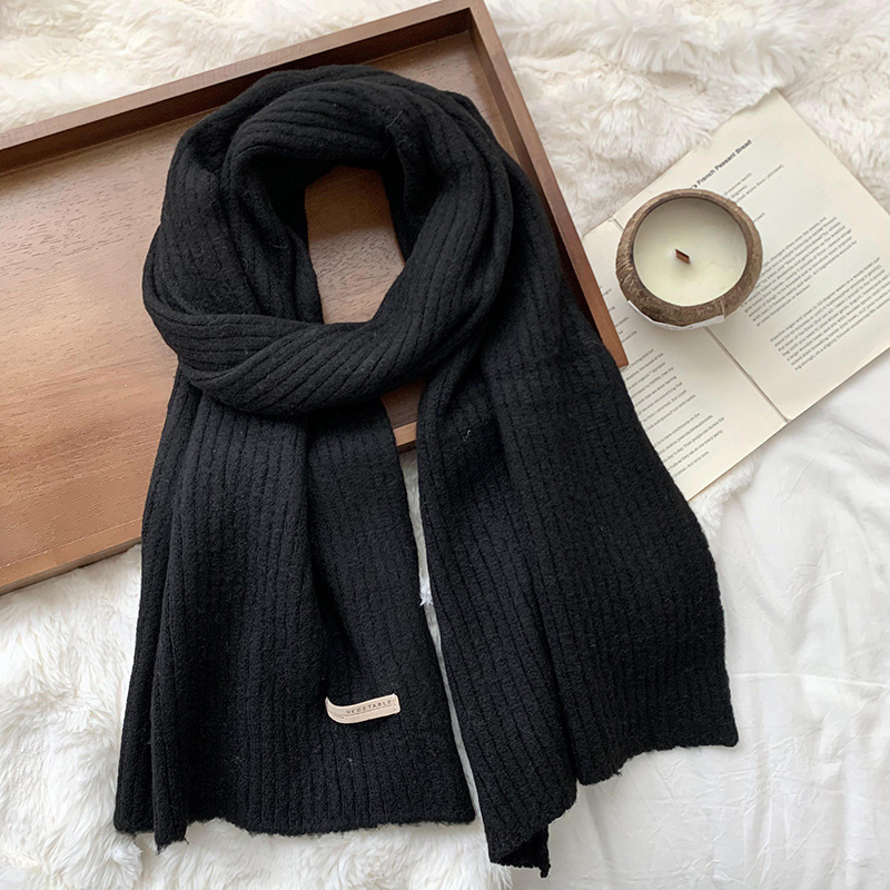 스카프 여성의 겨울 하이 엔드 2024 새로운 단색 울 모조 두꺼운 따뜻한 울 니트 스카프 도매스토어 가기