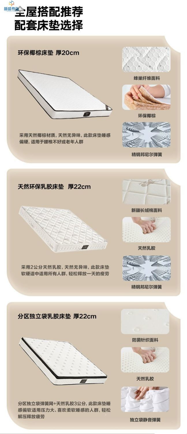 • 표준 가죽 침대 + 독립 가방 라텍스 매트리스 + 캐비닛 2개