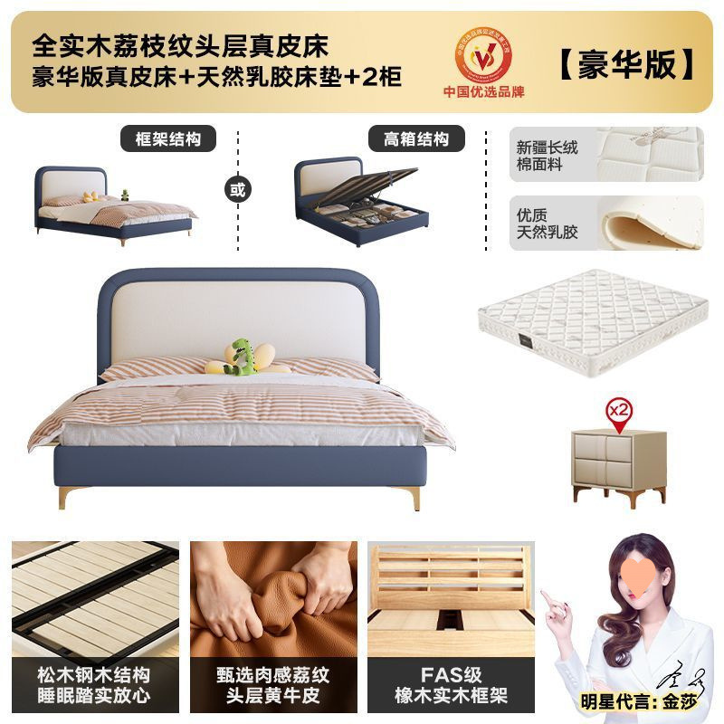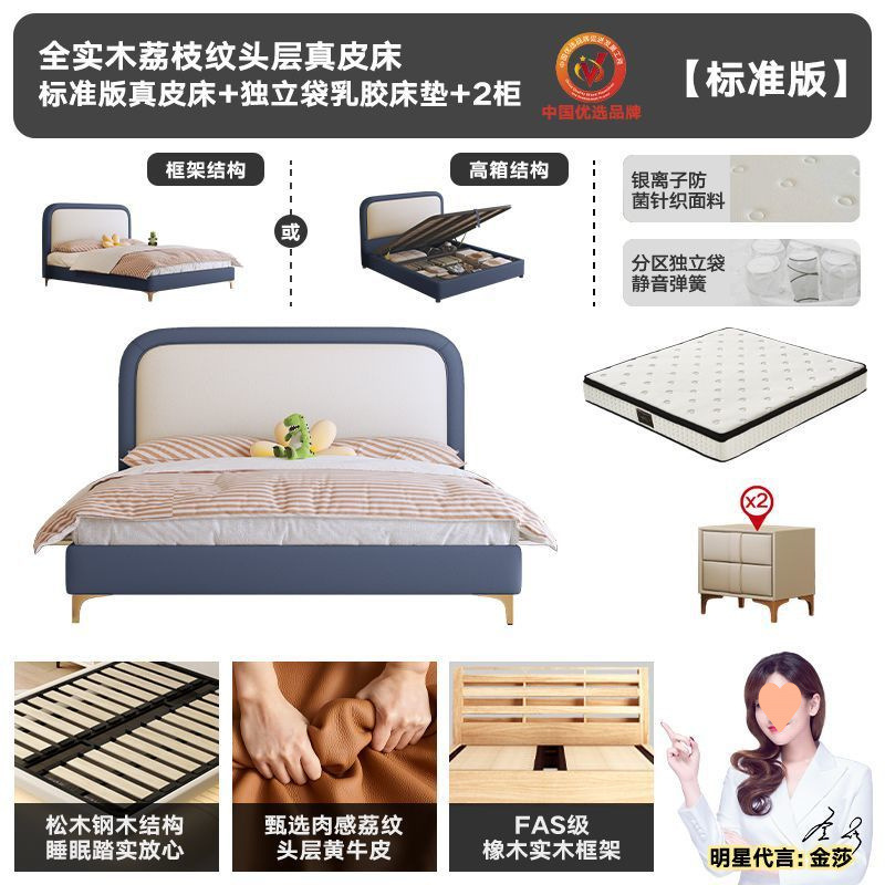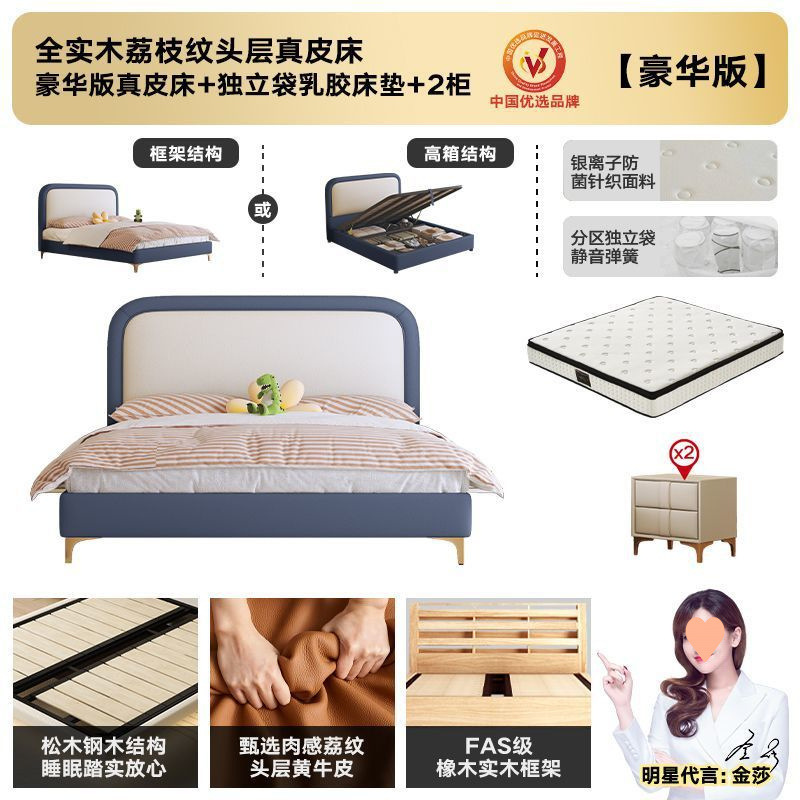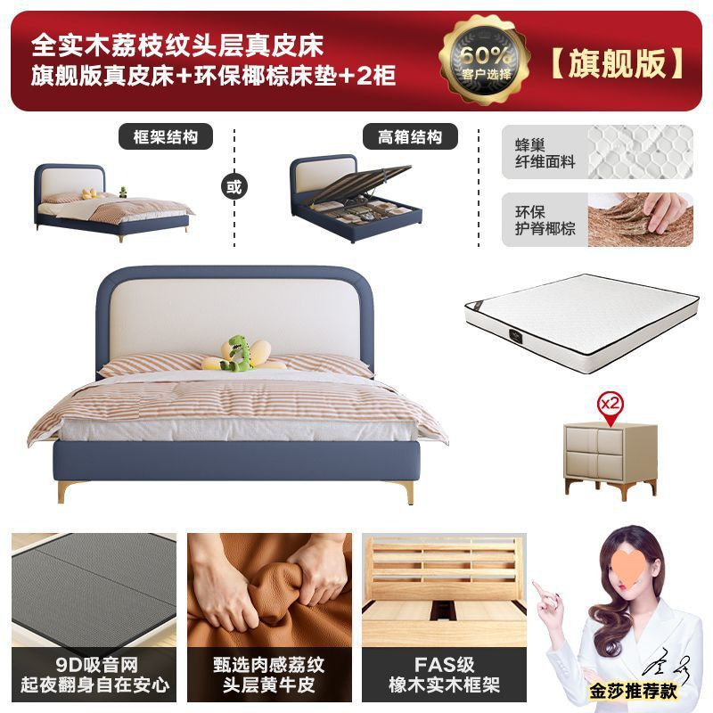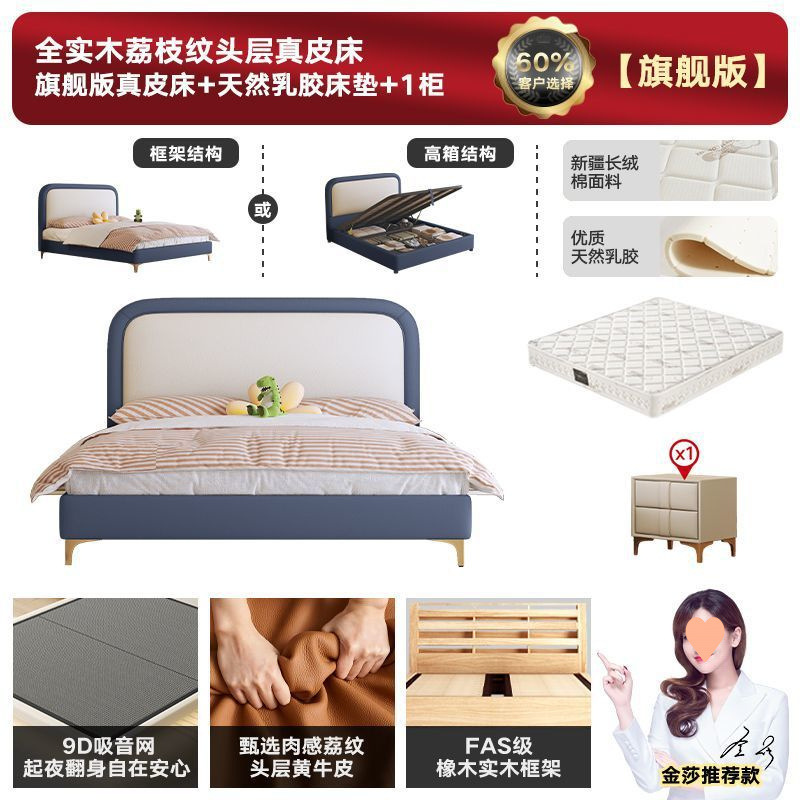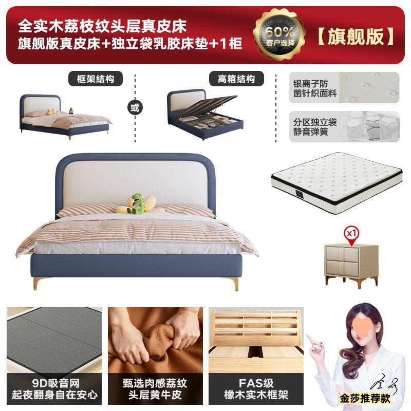 • 플래그십 가죽 침대 + 천연 라텍스 매트리스 + 캐비닛 2개