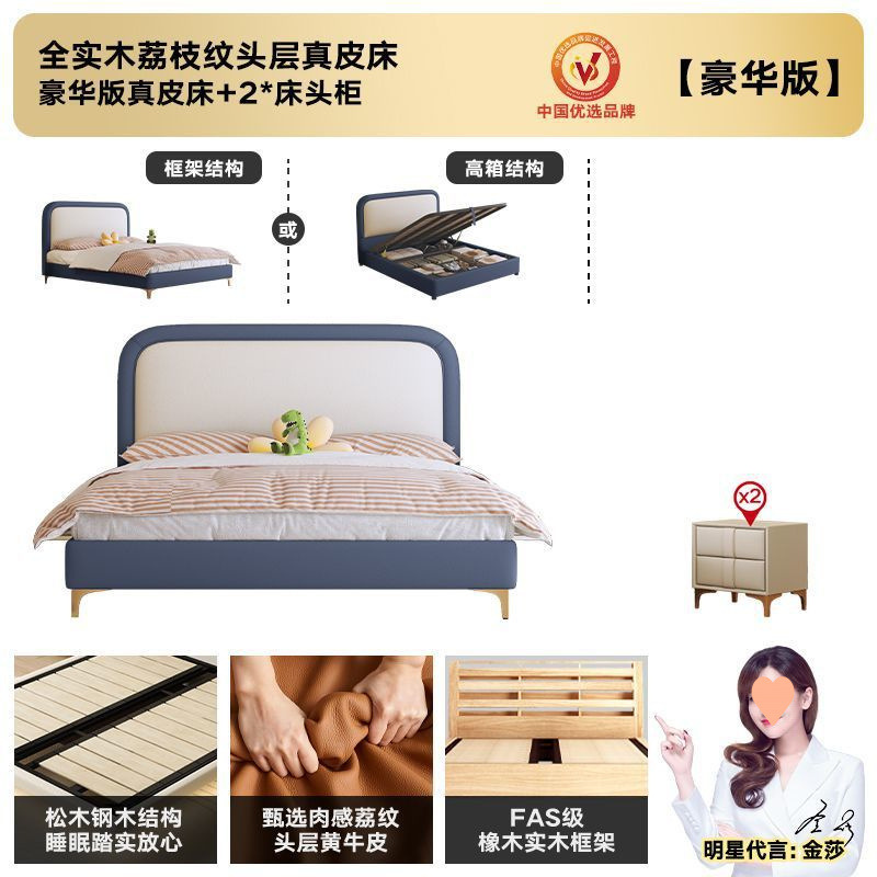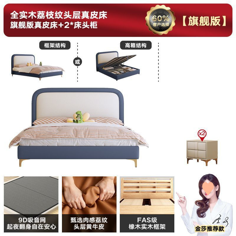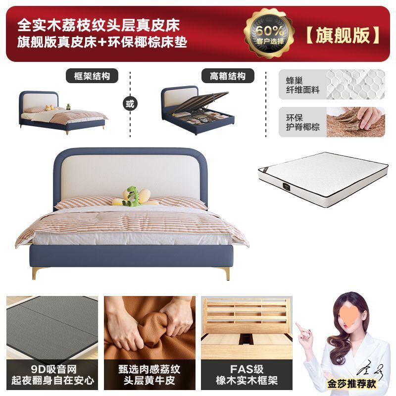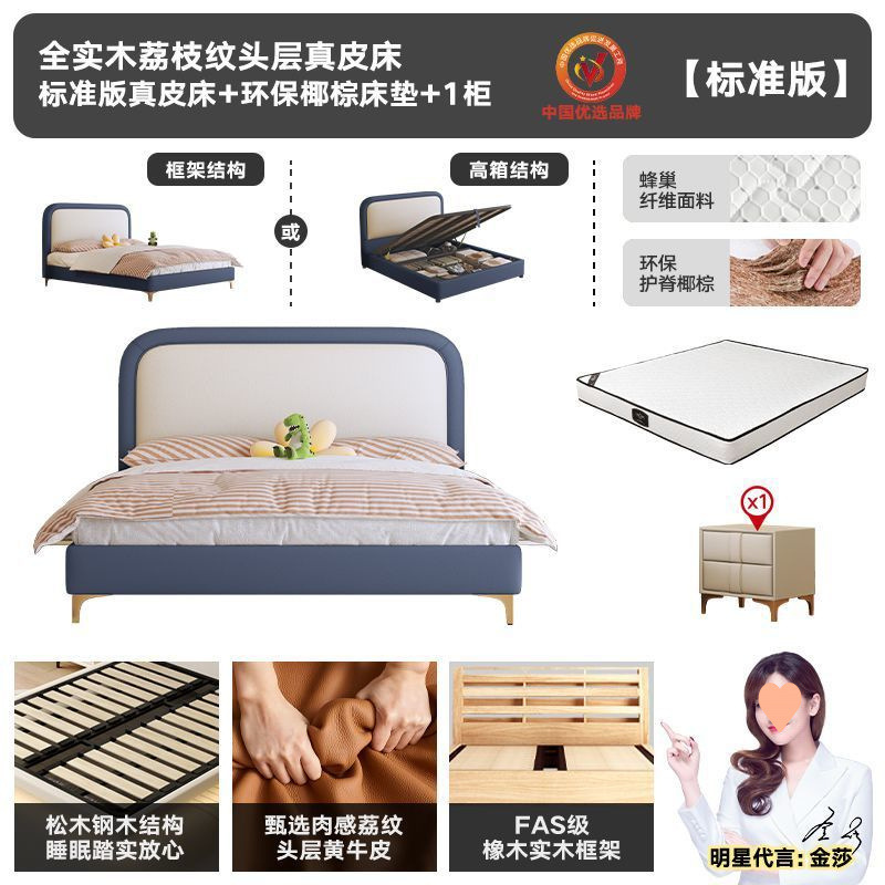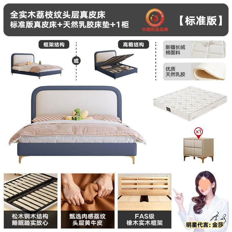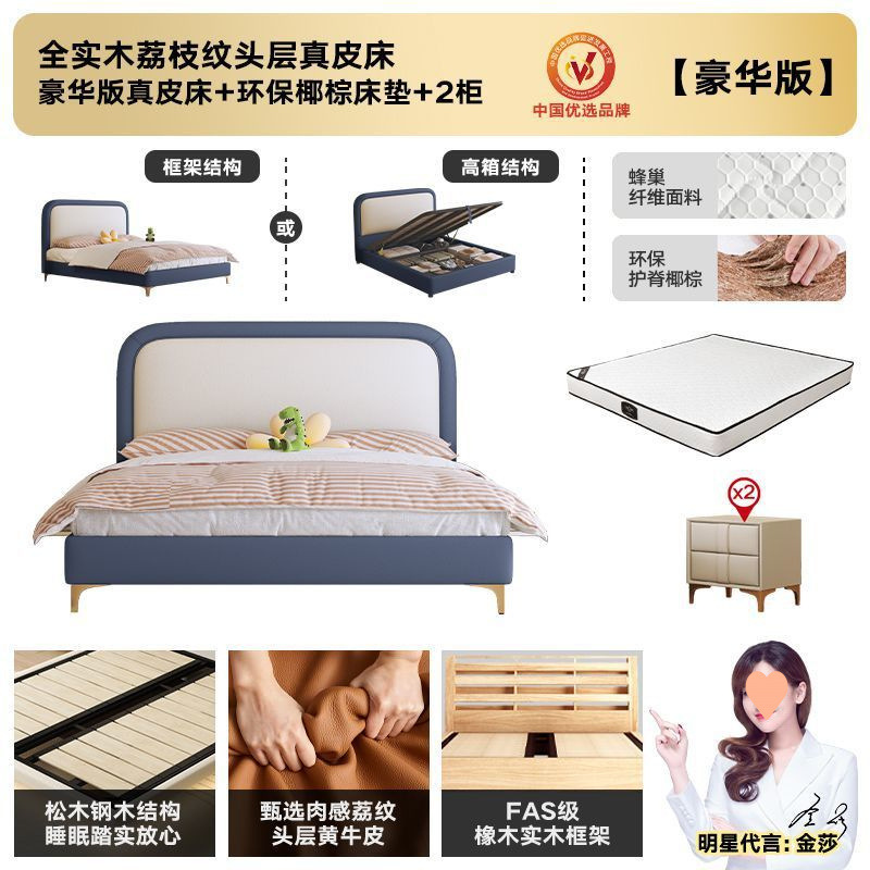 • 플래그십 가죽 침대 + 천연 라텍스 매트리스 + 캐비닛 2개