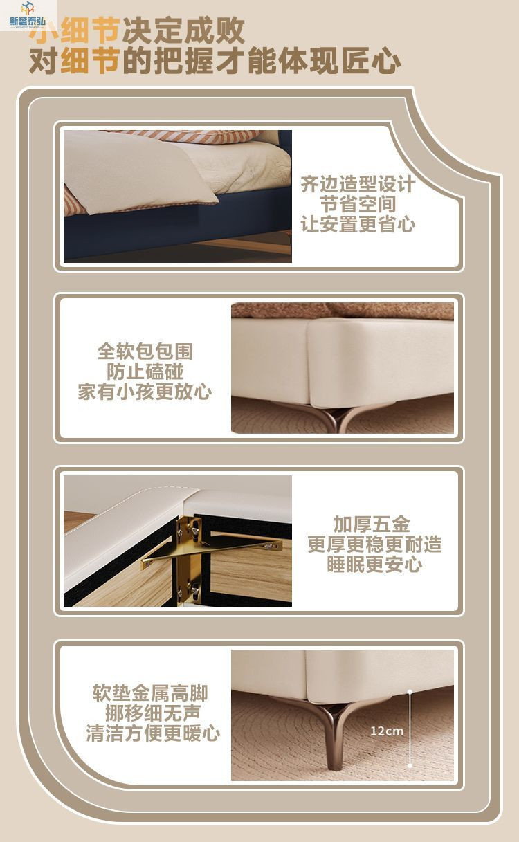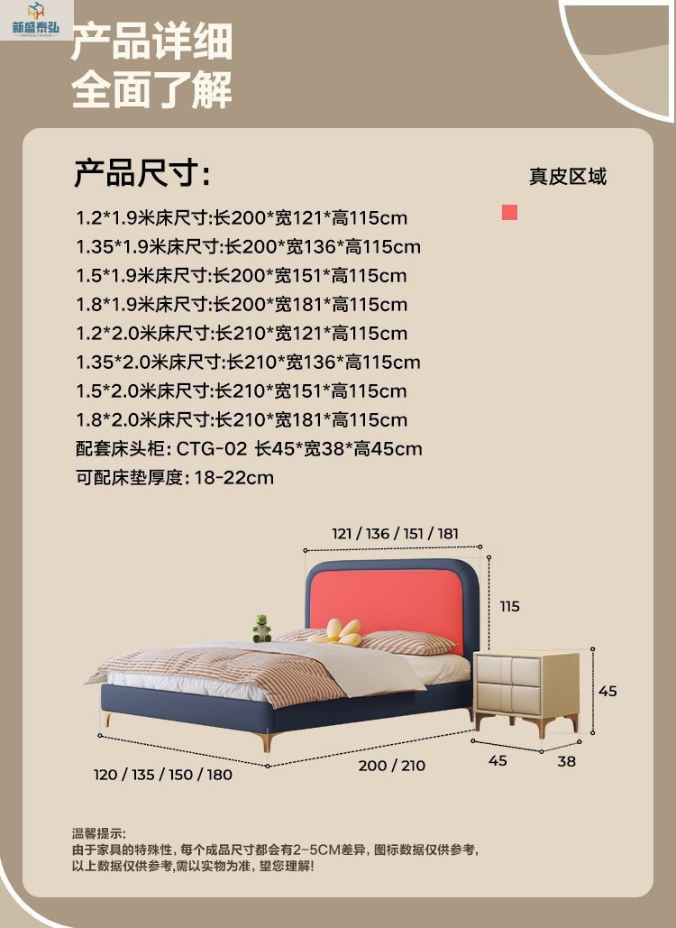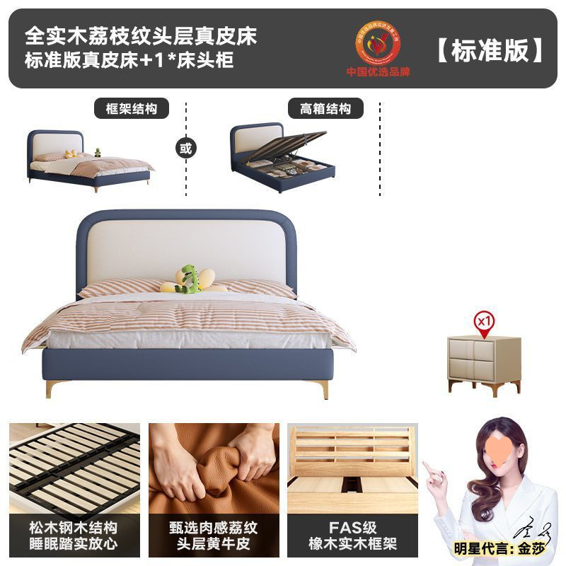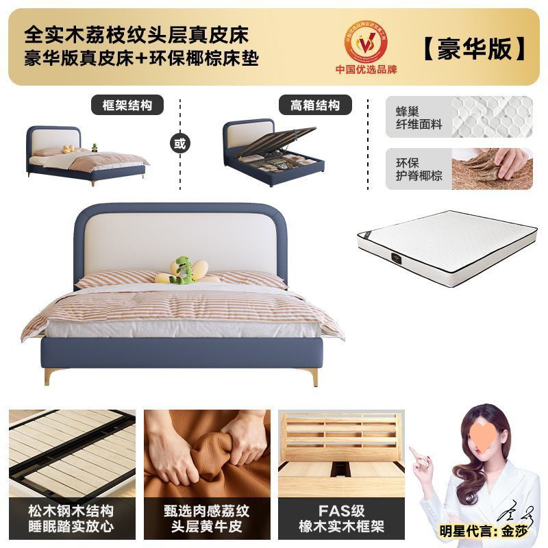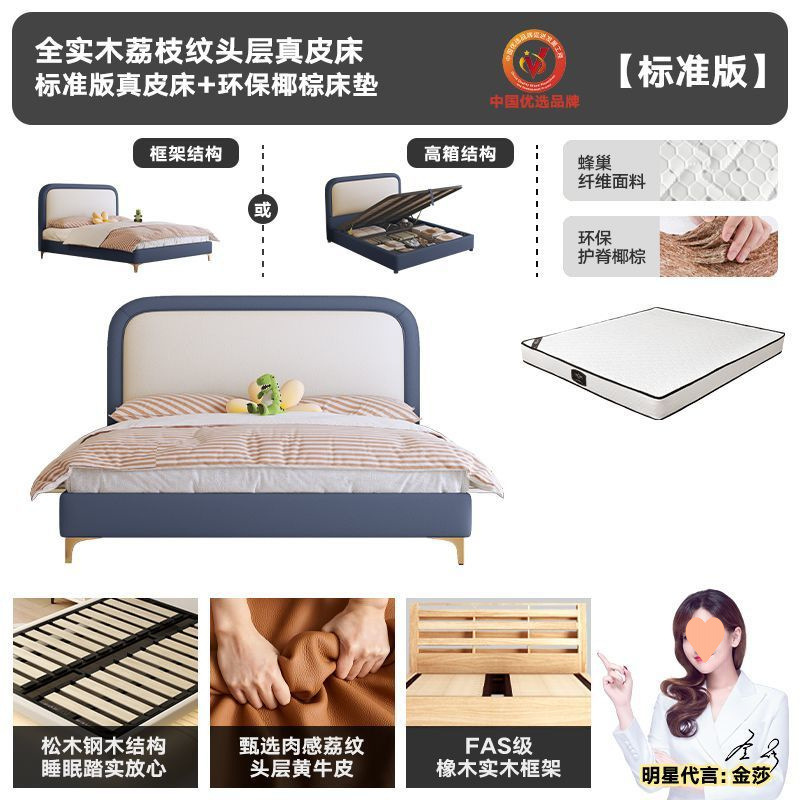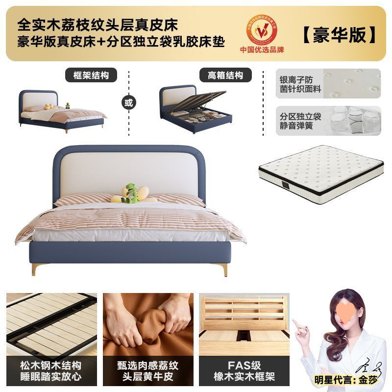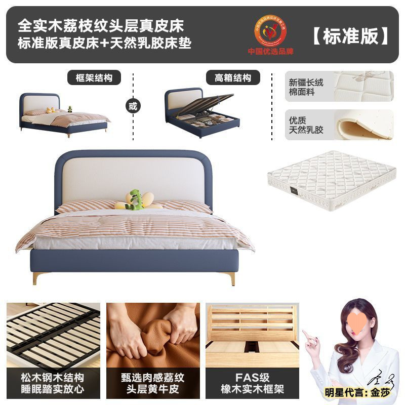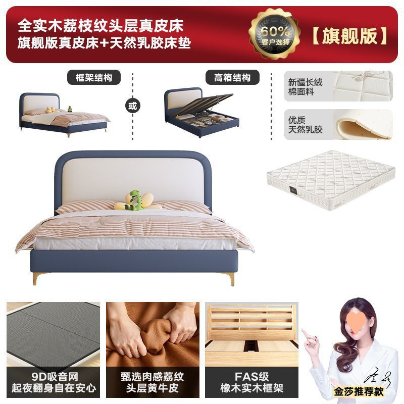• 플래그십 가죽 침대 + 천연 라텍스 매트리스 + 캐비닛 1개