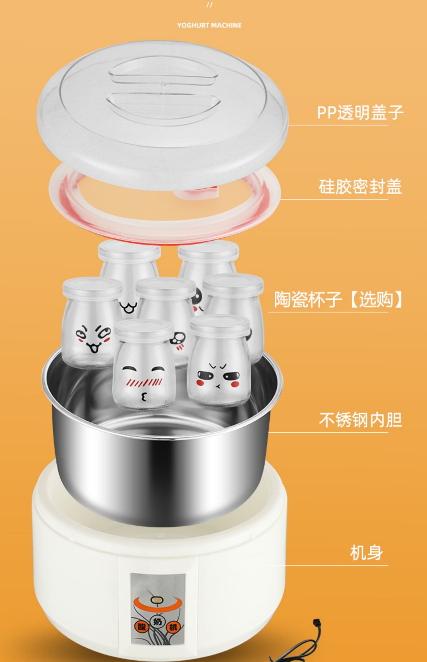 • 1.5L 내솥 + 7포인트 컵 + 박테리아 가루 작은 봉지 40개 [스테인리스 내솥 + 유리 서브 컵]