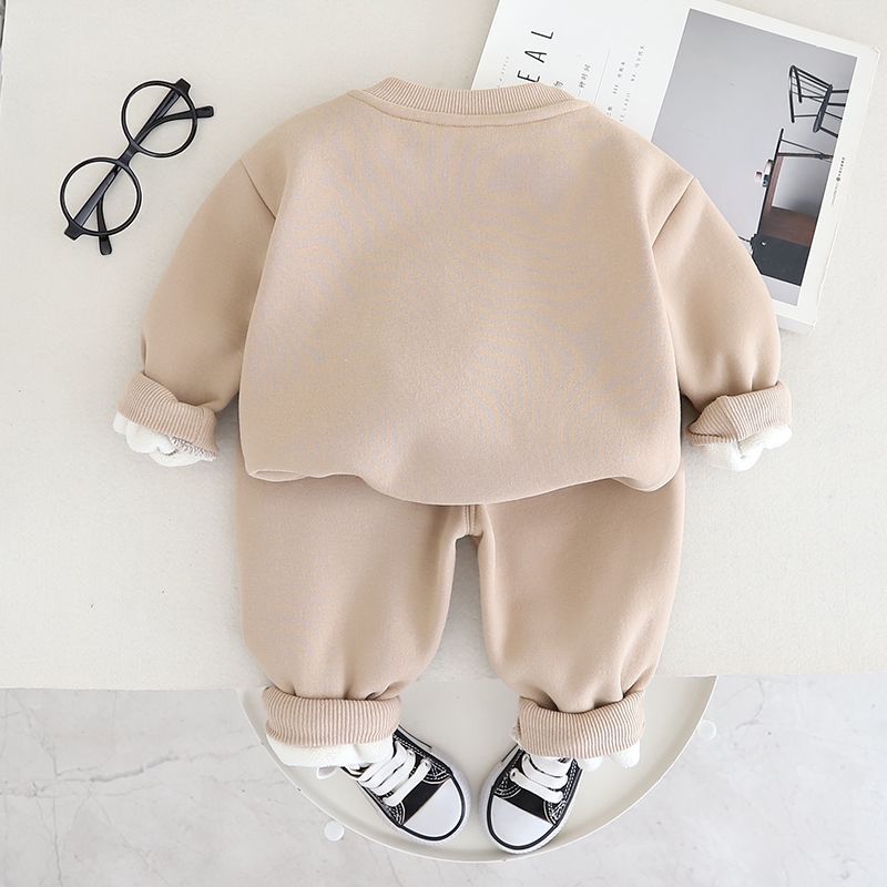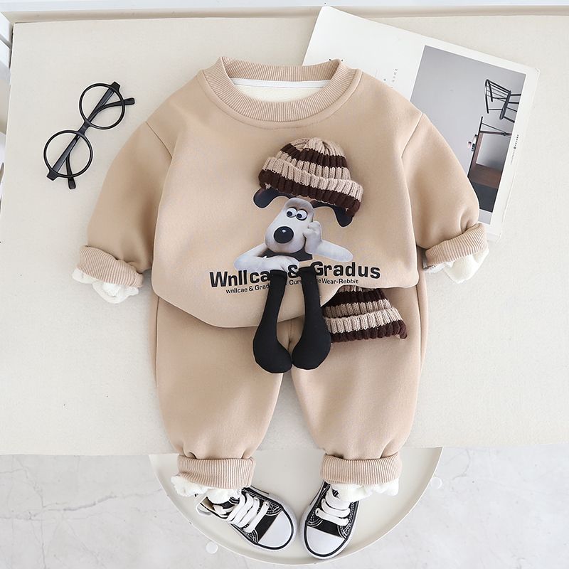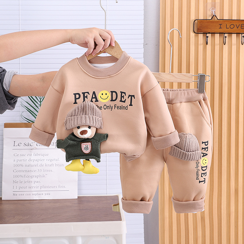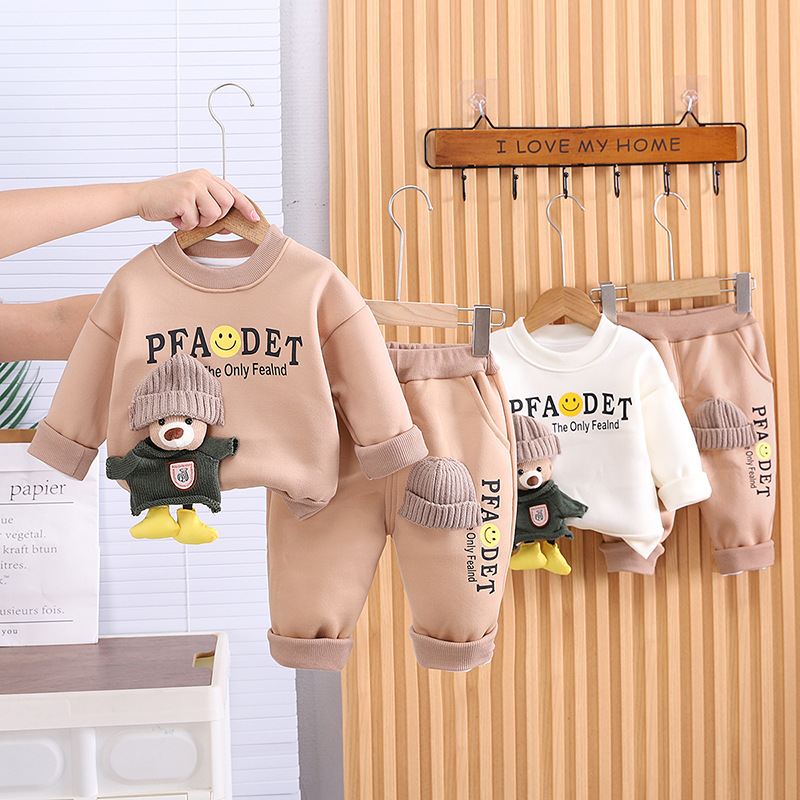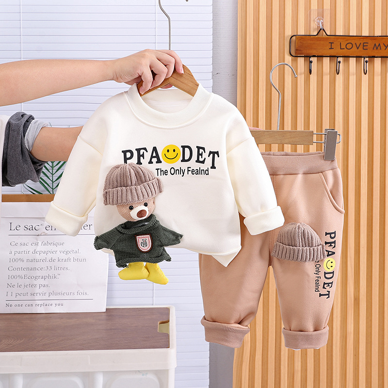 소년 소녀 플러스 벨벳 세트 봄 새로운 어린이 가을과 겨울 스웨트 만화 3 차원 곰 아기 남자의 서양식 투피스 세트