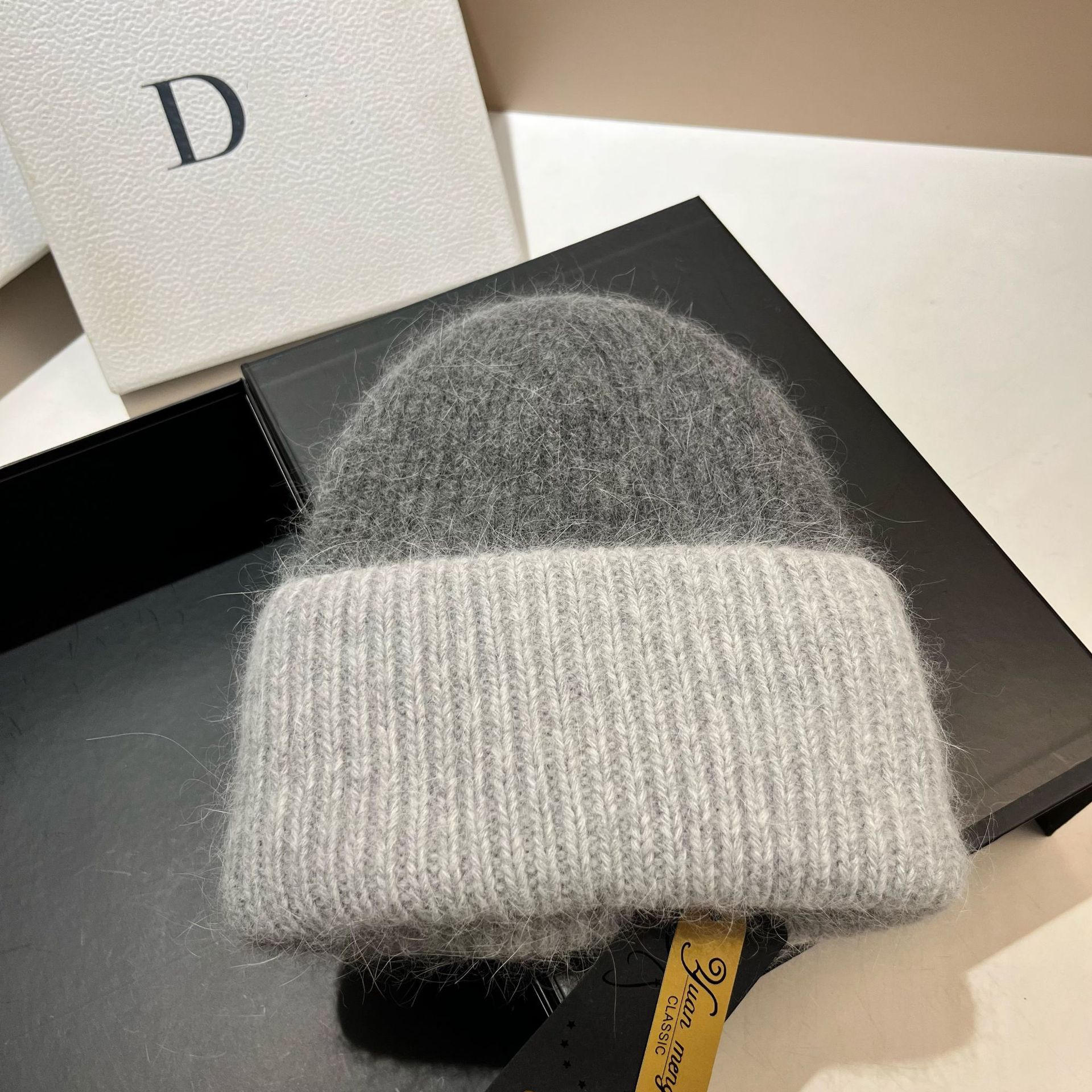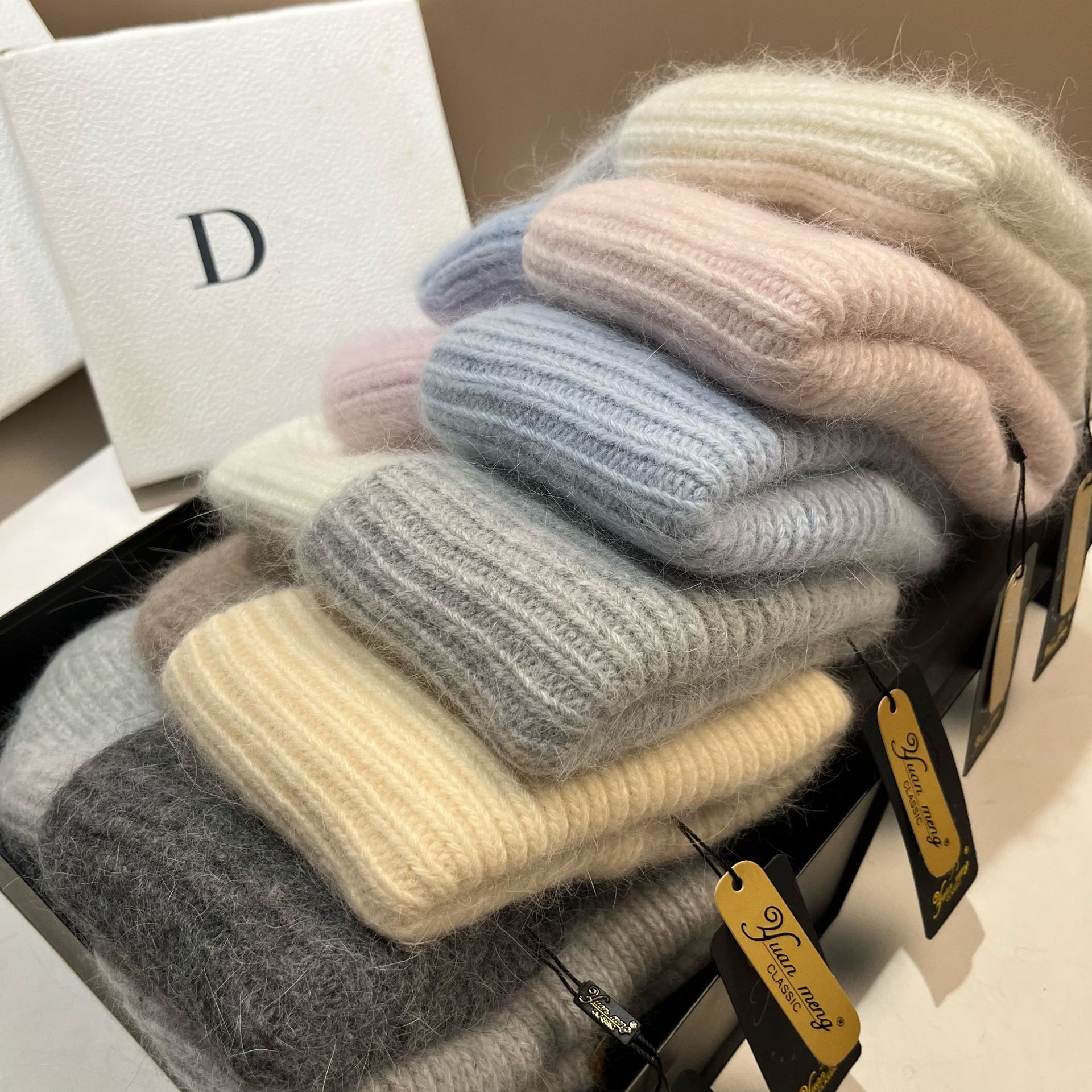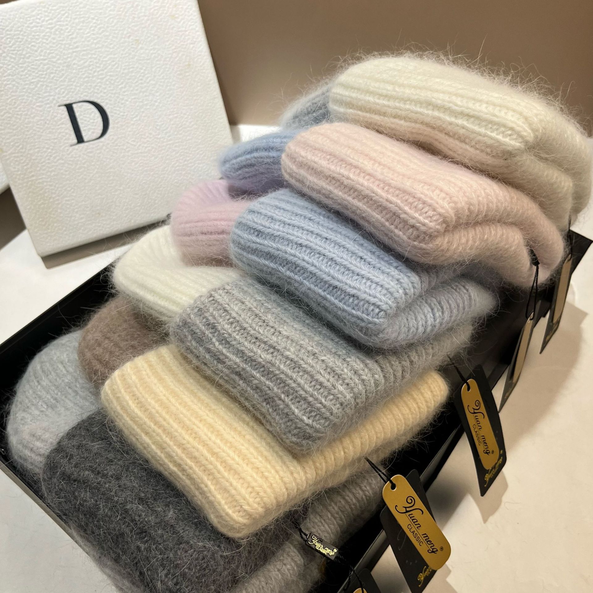 러시아로 수출 고품질 두꺼운 더블 레이어 긴 토끼 모피 니트 모자 겨울 북유럽 따뜻한 방풍 귀 보호 모자 여성용스토어 가기