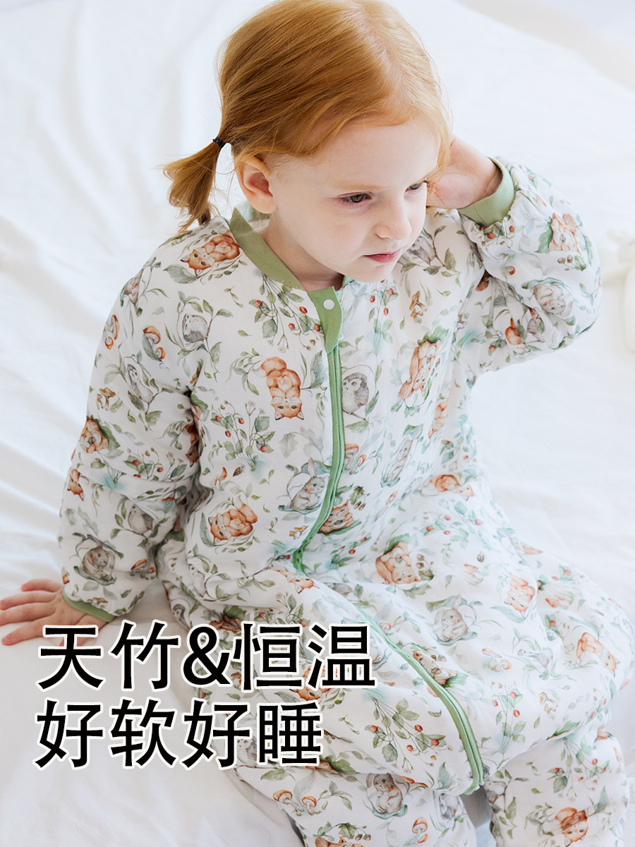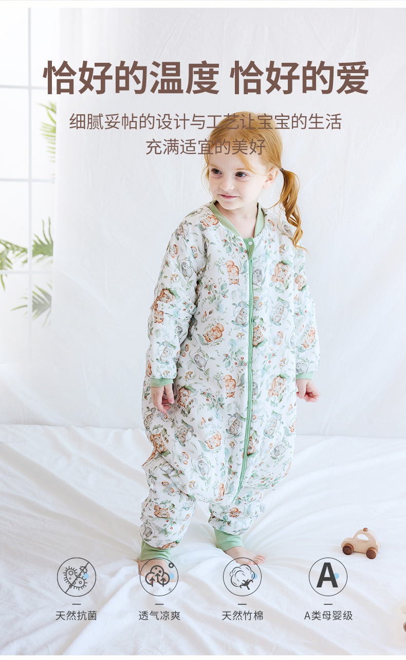 겨울 신생아 및 유아 어린이 다리 분할 항온 누비 대나무 면 거즈 겨울 항균 따뜻한 침낭스토어 가기