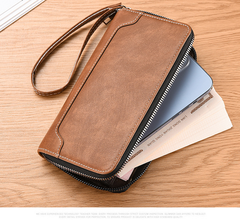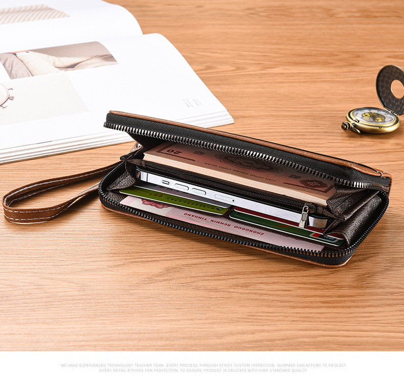 남자 긴 지갑 지퍼 지갑 멀티 카드 홀더 대용량 휴대 전화 클러치 백 다기능 남성 빈티지 지갑스토어 가기