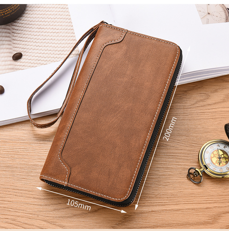 남자 긴 지갑 지퍼 지갑 멀티 카드 홀더 대용량 휴대 전화 클러치 백 다기능 남성 빈티지 지갑