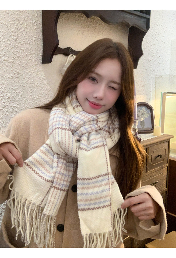 라이브 폭발 작은 샤넬 격자 무늬 스카프 달콤한 올 매치 캐시미어 소프트 왁스 스카프 학생 커플 술 목도리스토어 가기