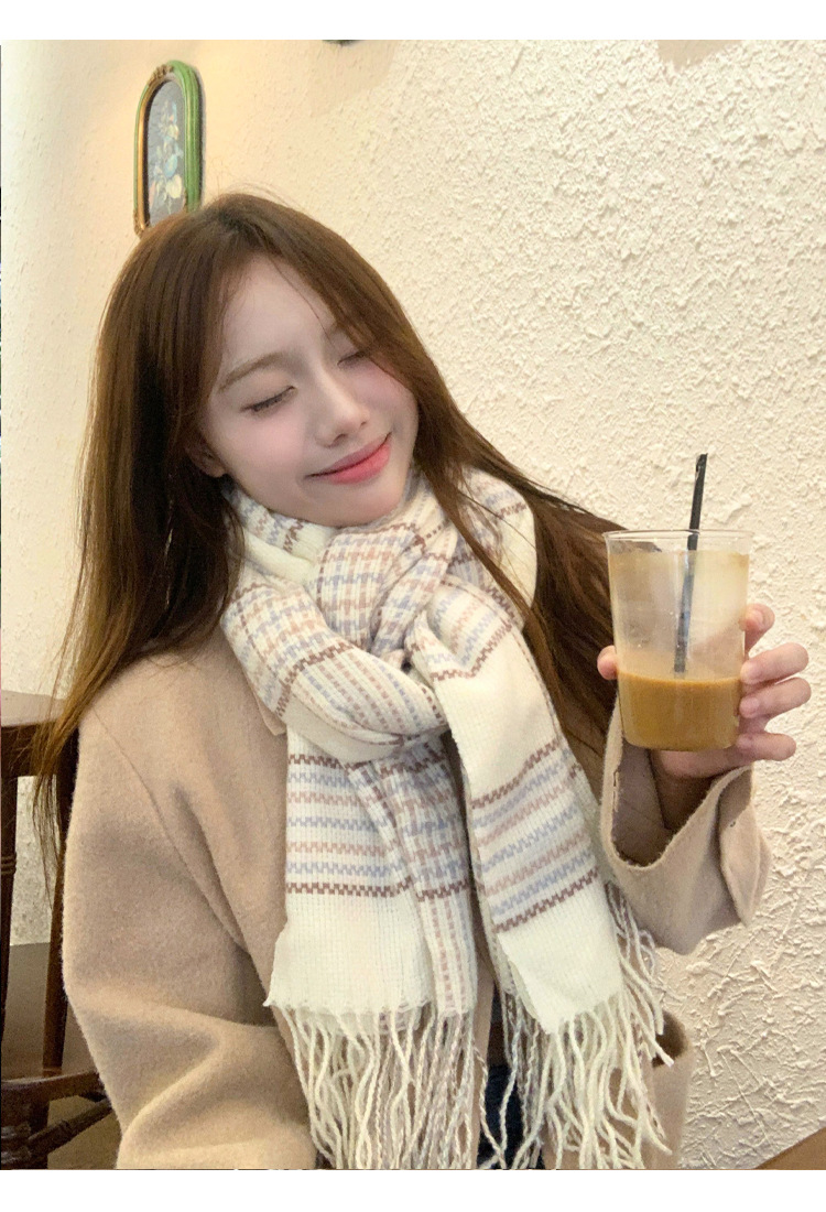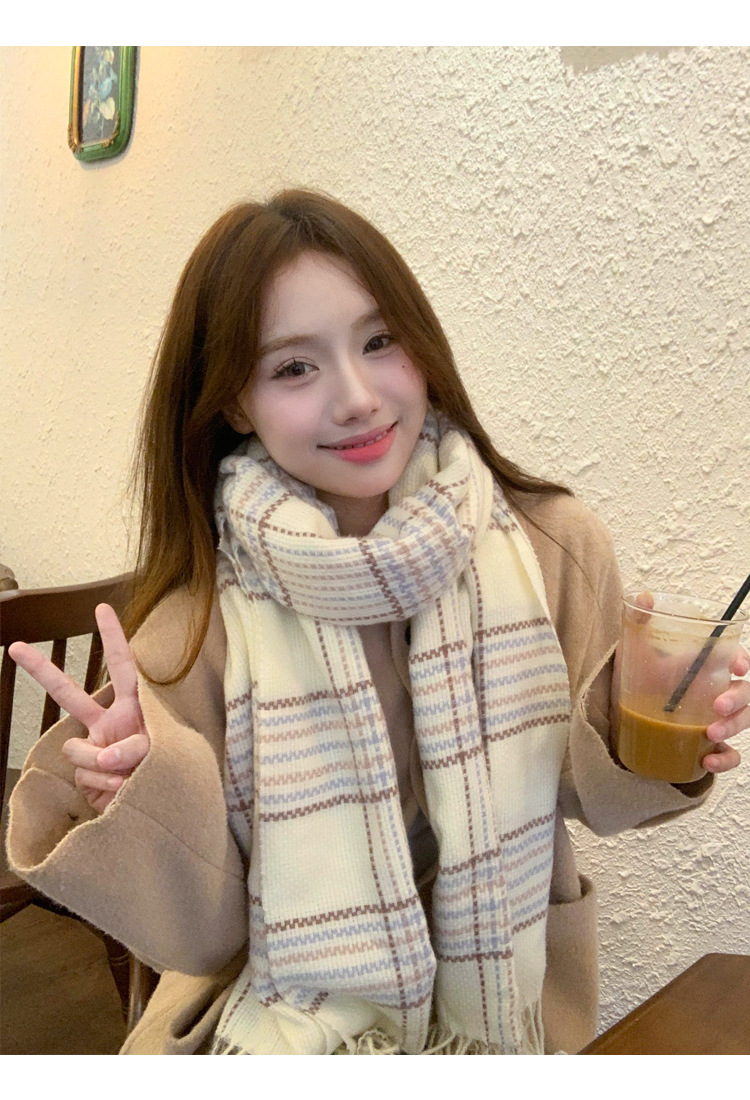 라이브 폭발 작은 샤넬 격자 무늬 스카프 달콤한 올 매치 캐시미어 소프트 왁스 스카프 학생 커플 술 목도리