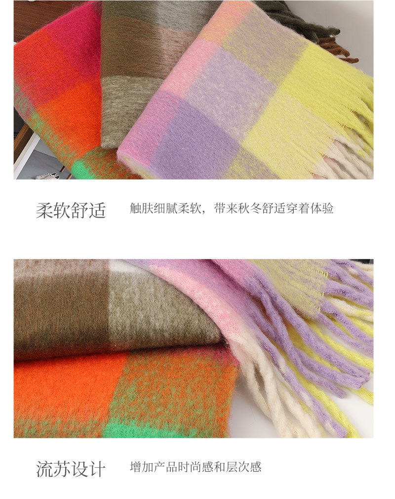여성을위한 고급 컬러 격자 무늬 스카프 겨울 따뜻한 스카프 모헤어 두꺼운 스카프 다목적 목도리 도매스토어 가기