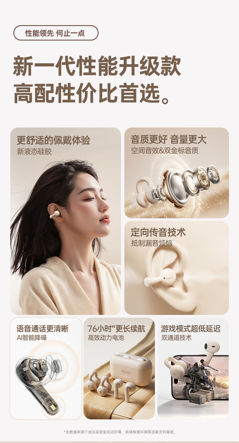 • [이어클립 및 귀 이중 체험] Yunyan White_Supreme Edition [76H 초장기 배터리 수명_입체 공간 음향 효과]