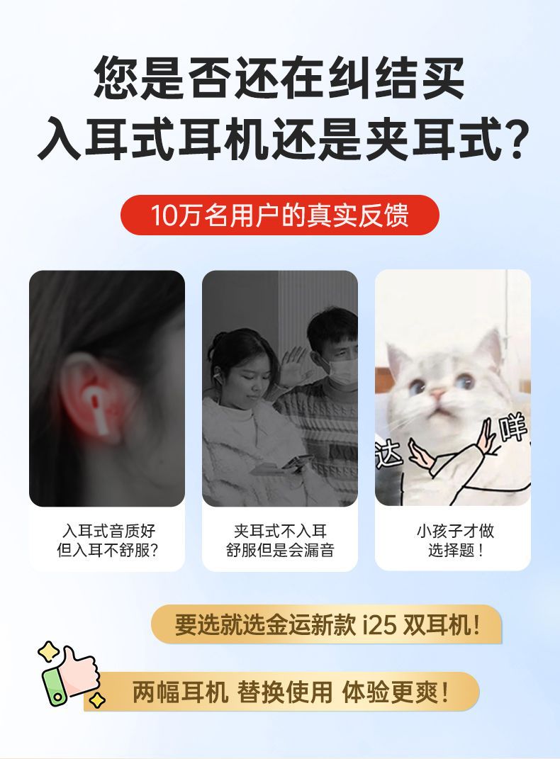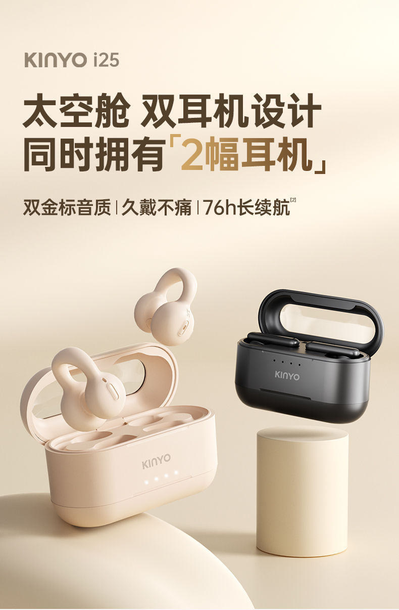 뜨거운 판매 i25 블루투스 헤드셋 무선 이어 클립 세미 인 이어 이중 목적 개방형 듀얼 헤드셋 매우 긴 배터리 수명스토어 가기