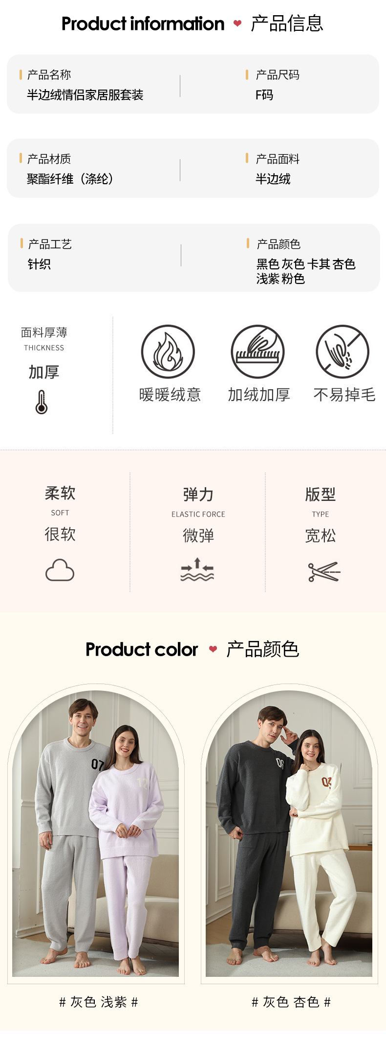 폴리 에스테르 하프 벨벳 커플의 홈 의류 풀오버 카디건 스타일 멀티 컬러 옵션 플러시 세트 도매스토어 가기