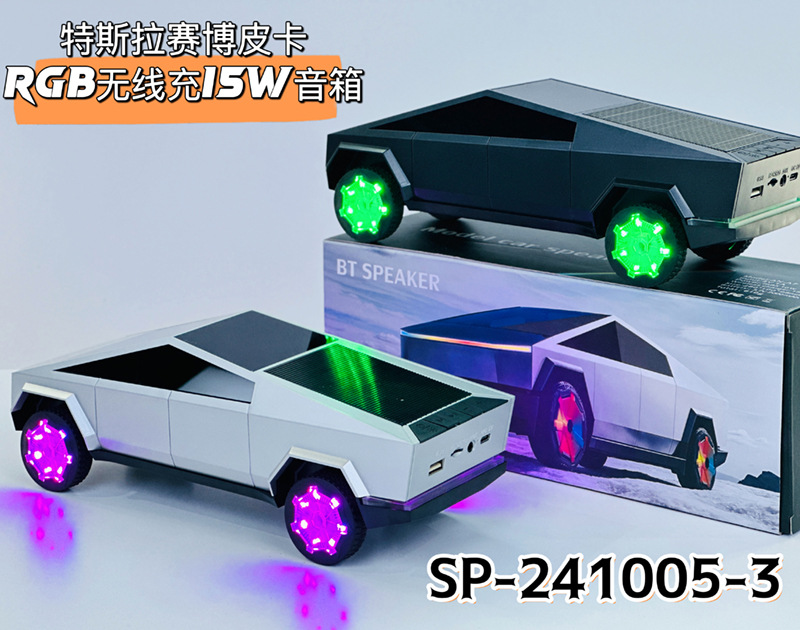 새로운 창조적 인 RGB 무선 충전 자동차 오디오 데스크탑 장식 픽업 모델 다기능 블루투스 스피커 도매스토어 가기
