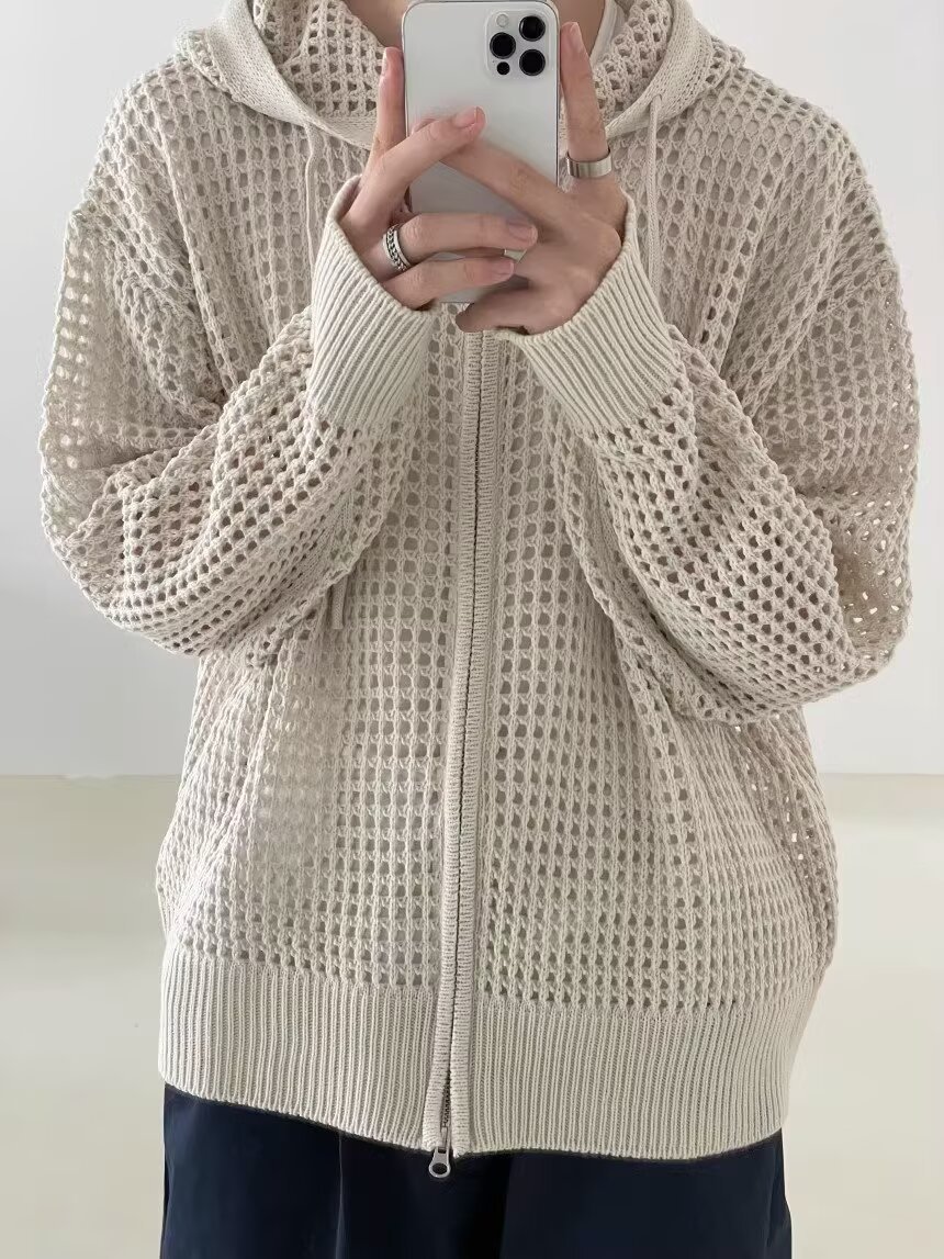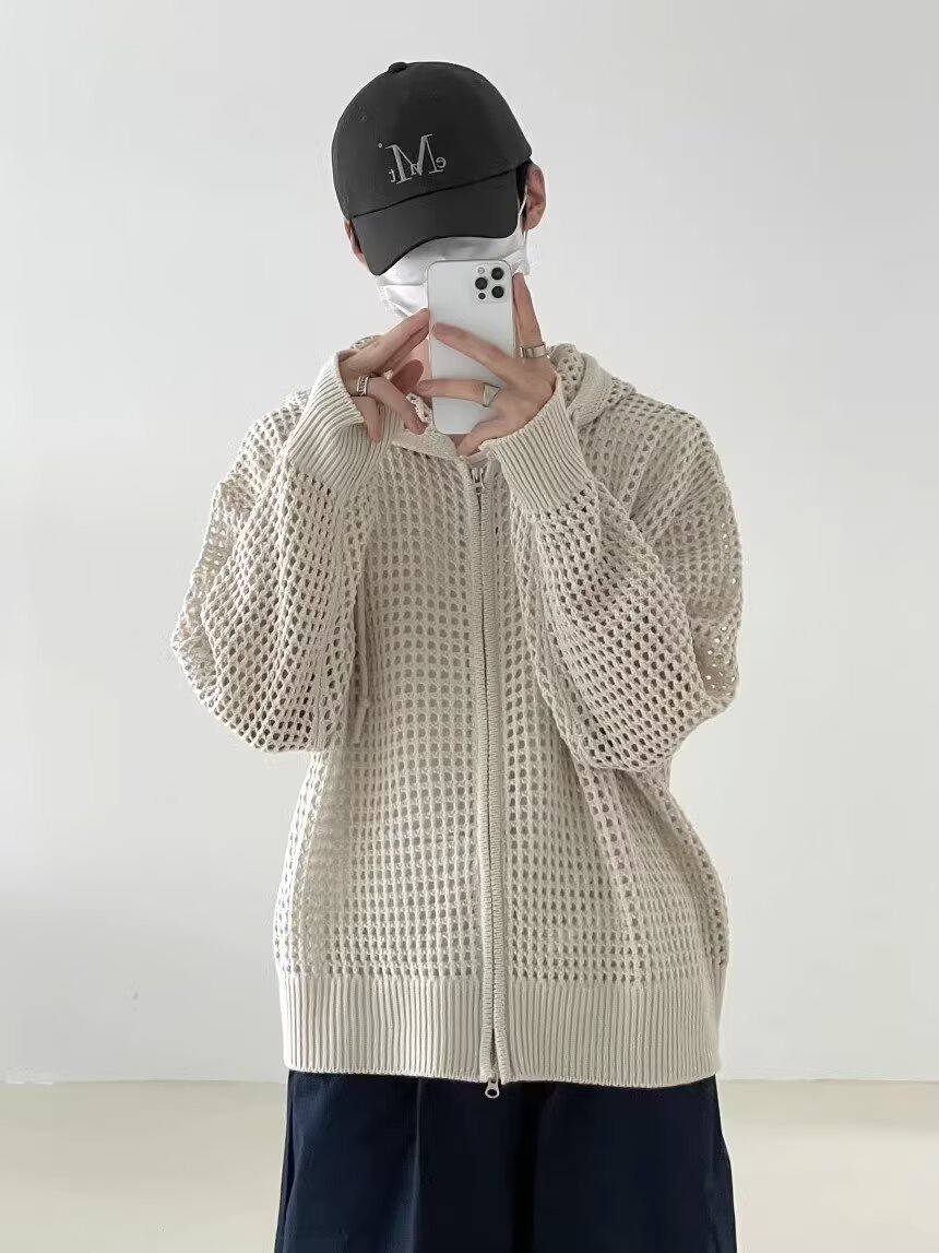 가을 남성 중공 니트 재킷, 가디건, 에어컨 의류, 긴팔 자외선 차단 탑, 스웨터, 한국 스타일 트렌디스토어 가기