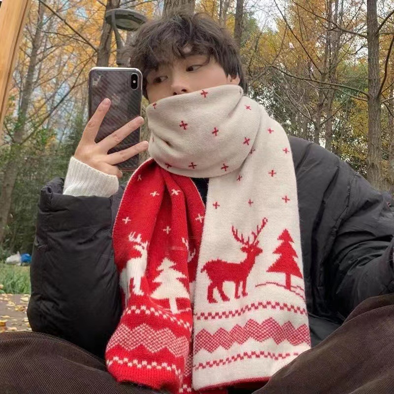 가을 겨울 엘크 크리스마스 스카프 여학생 한국 양면 양모 니트 자카드 앤틀러스 크리스마스 트리 스카프