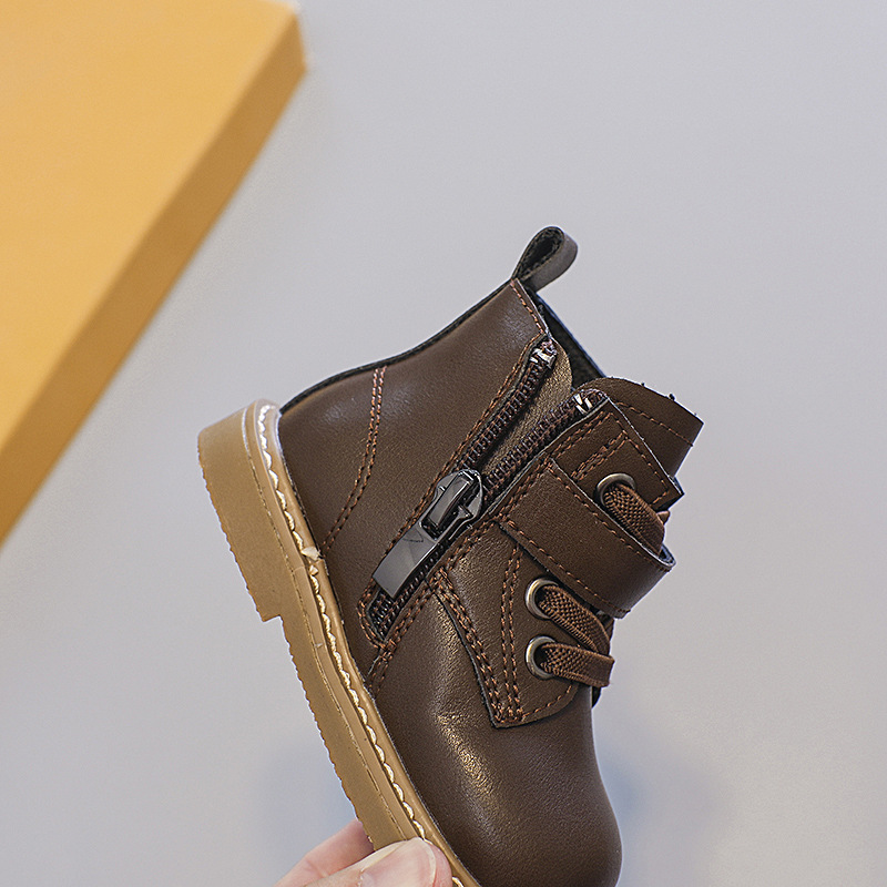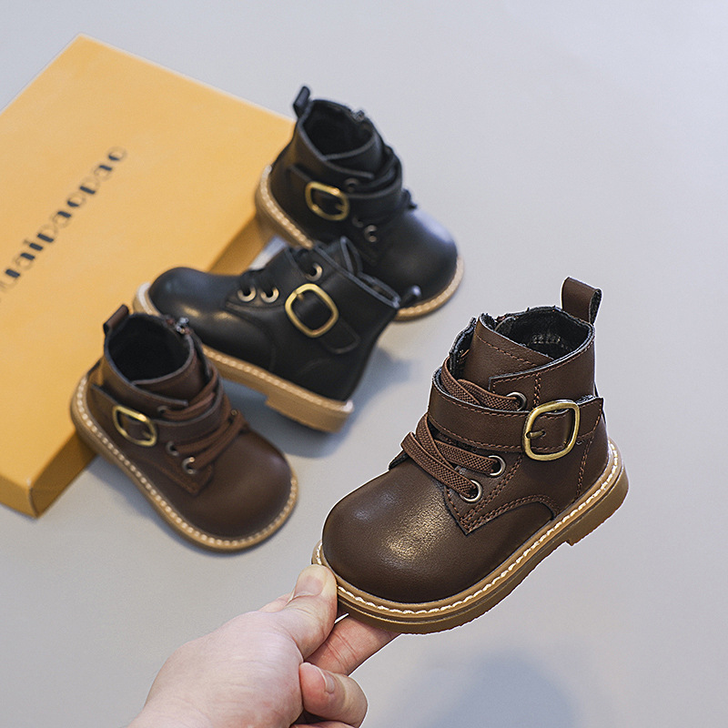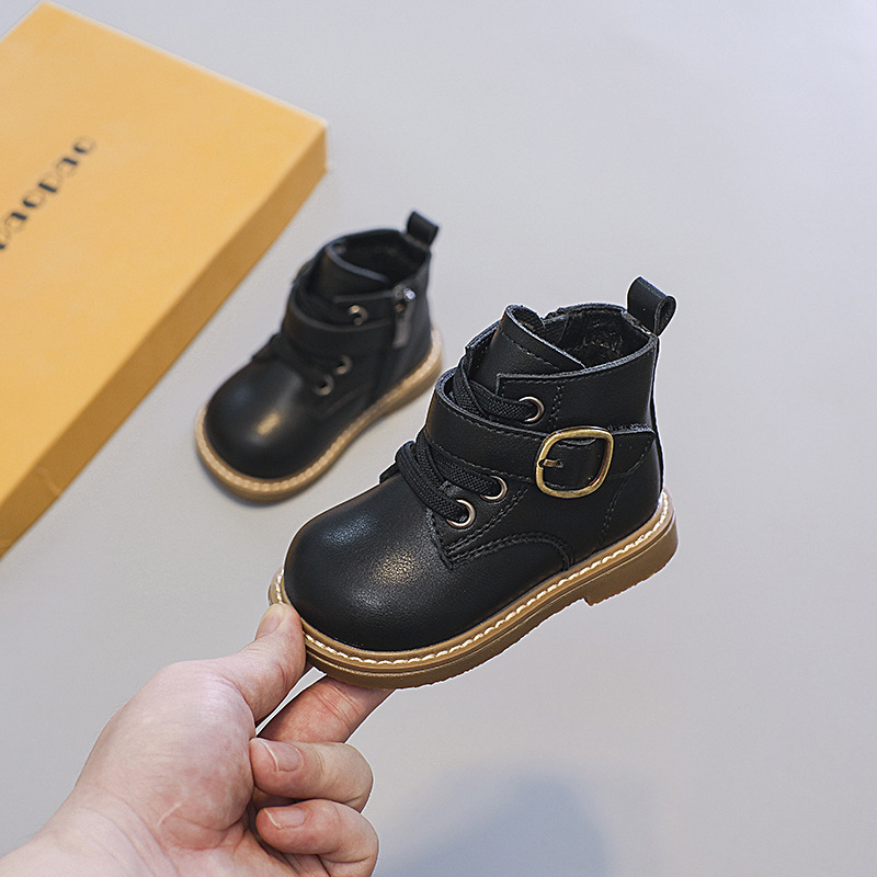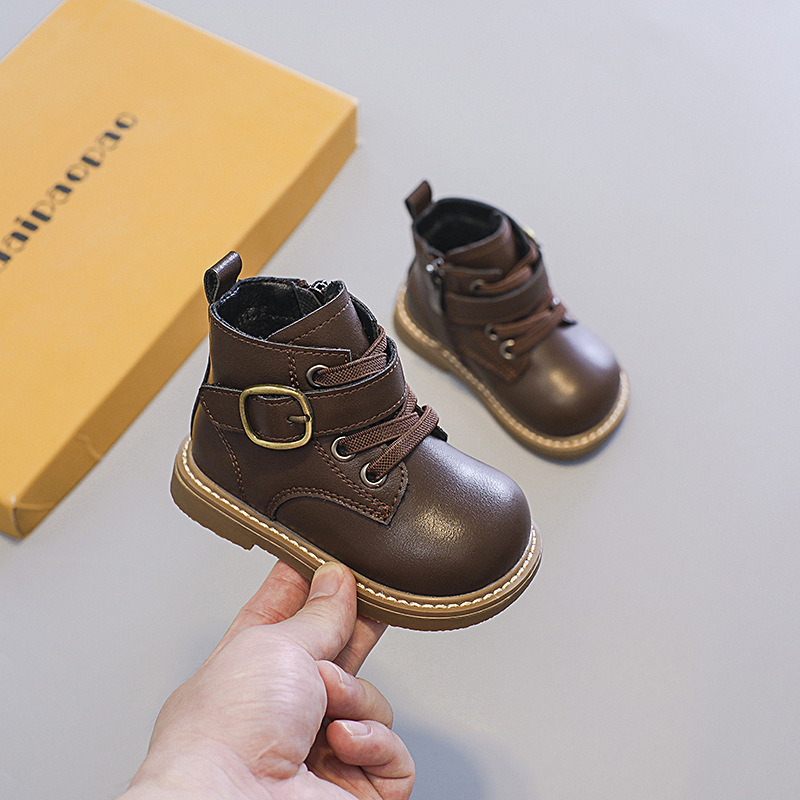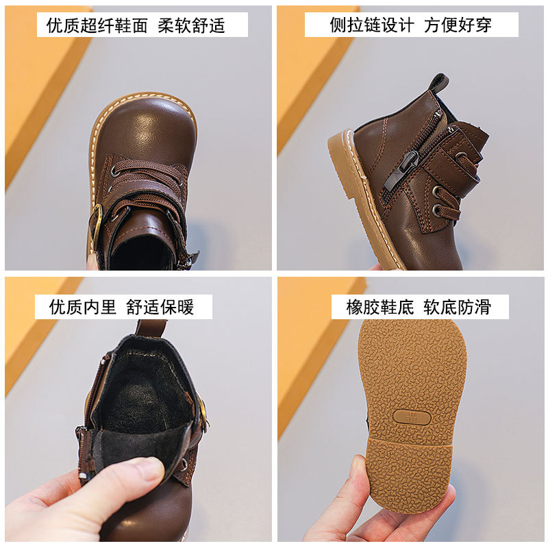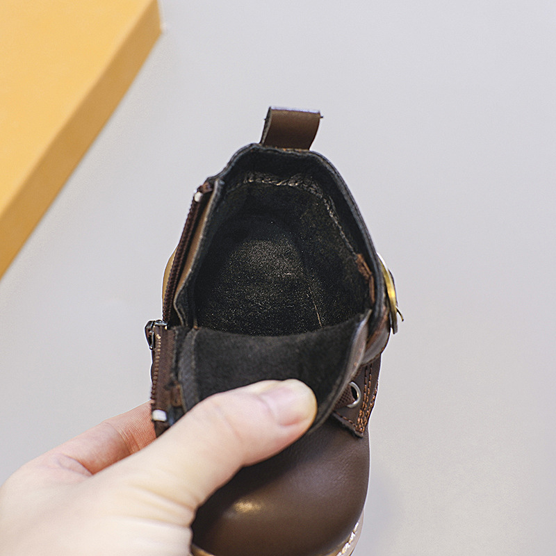 겨울 어린이 마틴 부츠 레트로 영국 스타일 여성 부츠 기모 따뜻한 소년의 금속 사이드 지퍼 가죽 부츠