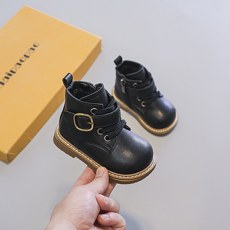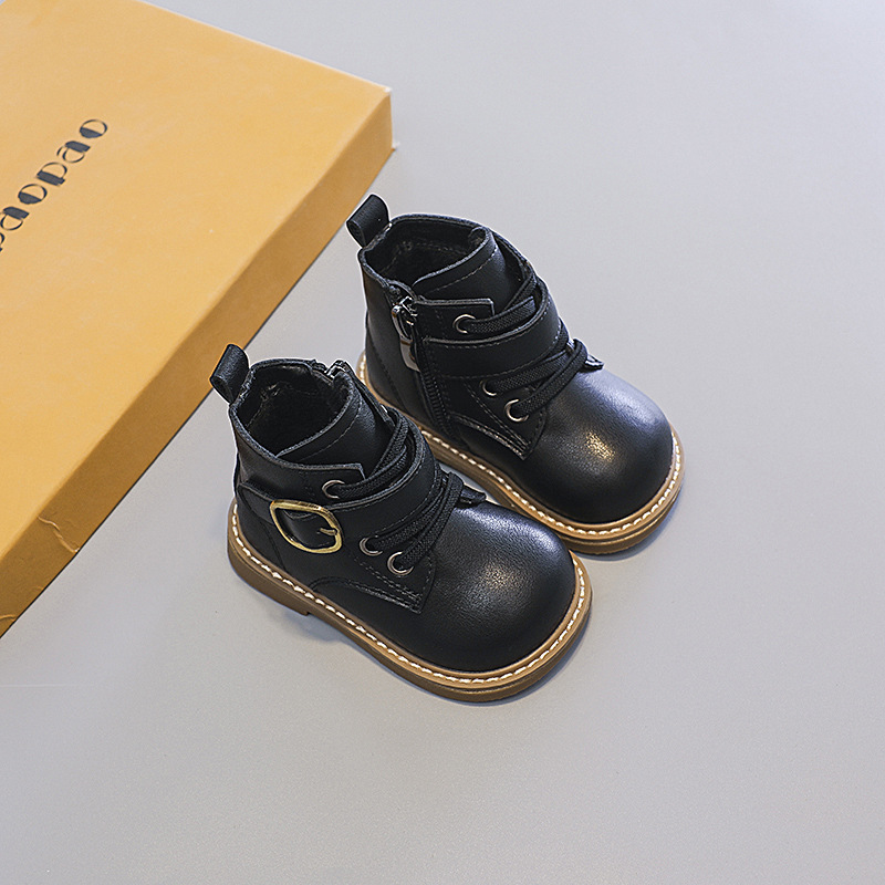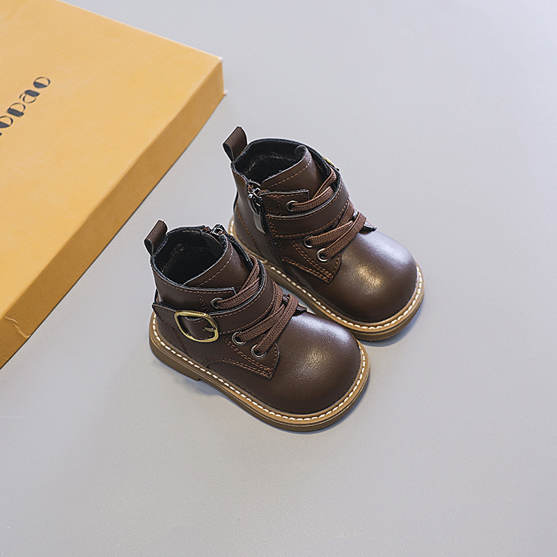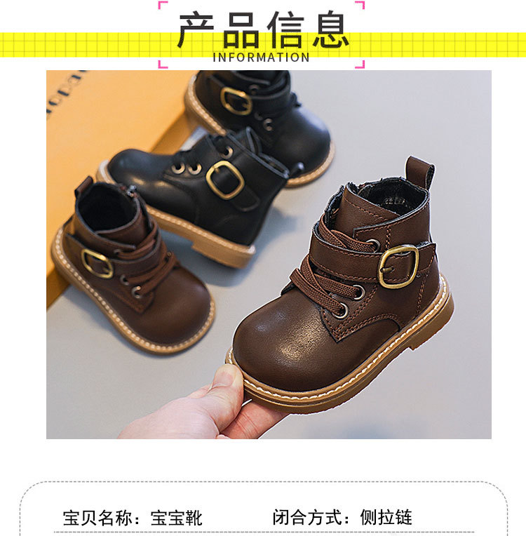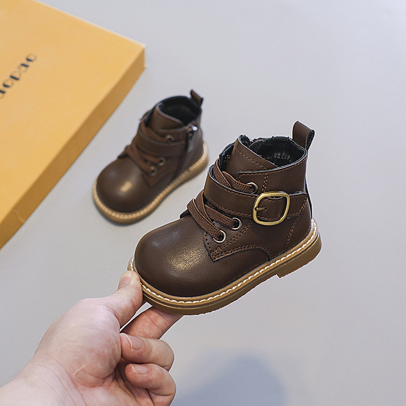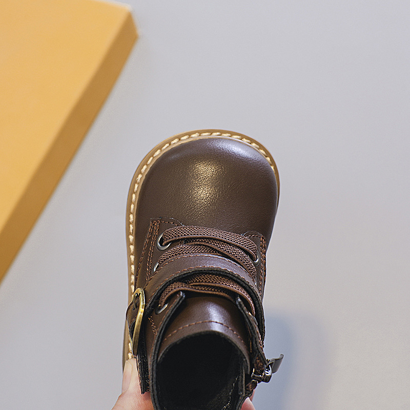 겨울 어린이 마틴 부츠 레트로 영국 스타일 여성 부츠 기모 따뜻한 소년의 금속 사이드 지퍼 가죽 부츠
