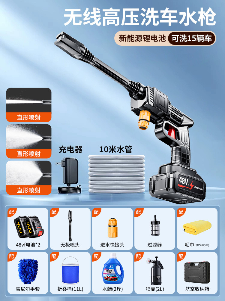 • 독일 4펌프 터보차저 15000mAH [배터리 2개 1충전 + 10m 수도관 + 공구 상자 + 물통 + 수건 + 물 왁스 + 셔닐 장갑 + 버블