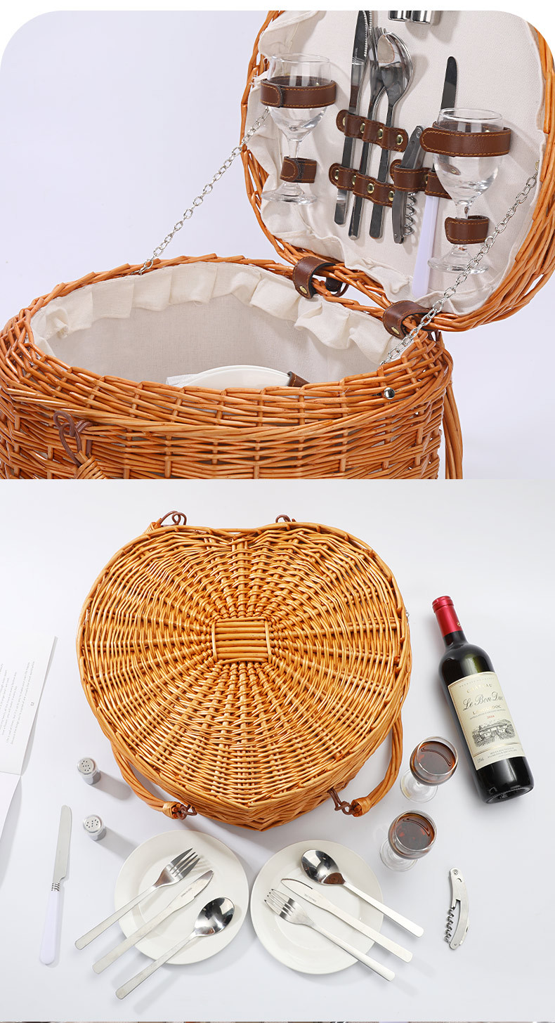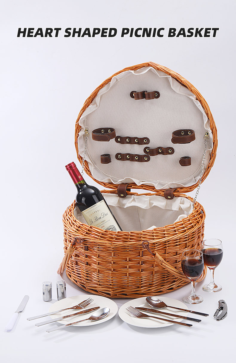 아마존 등나무 하트 모양의 피크닉 바구니는 나이프와 포크 식기 야외 피크닉 바구니 등나무 바구니가있는 고리 버들 보관 바구니를 처리합니다.스토어 가기