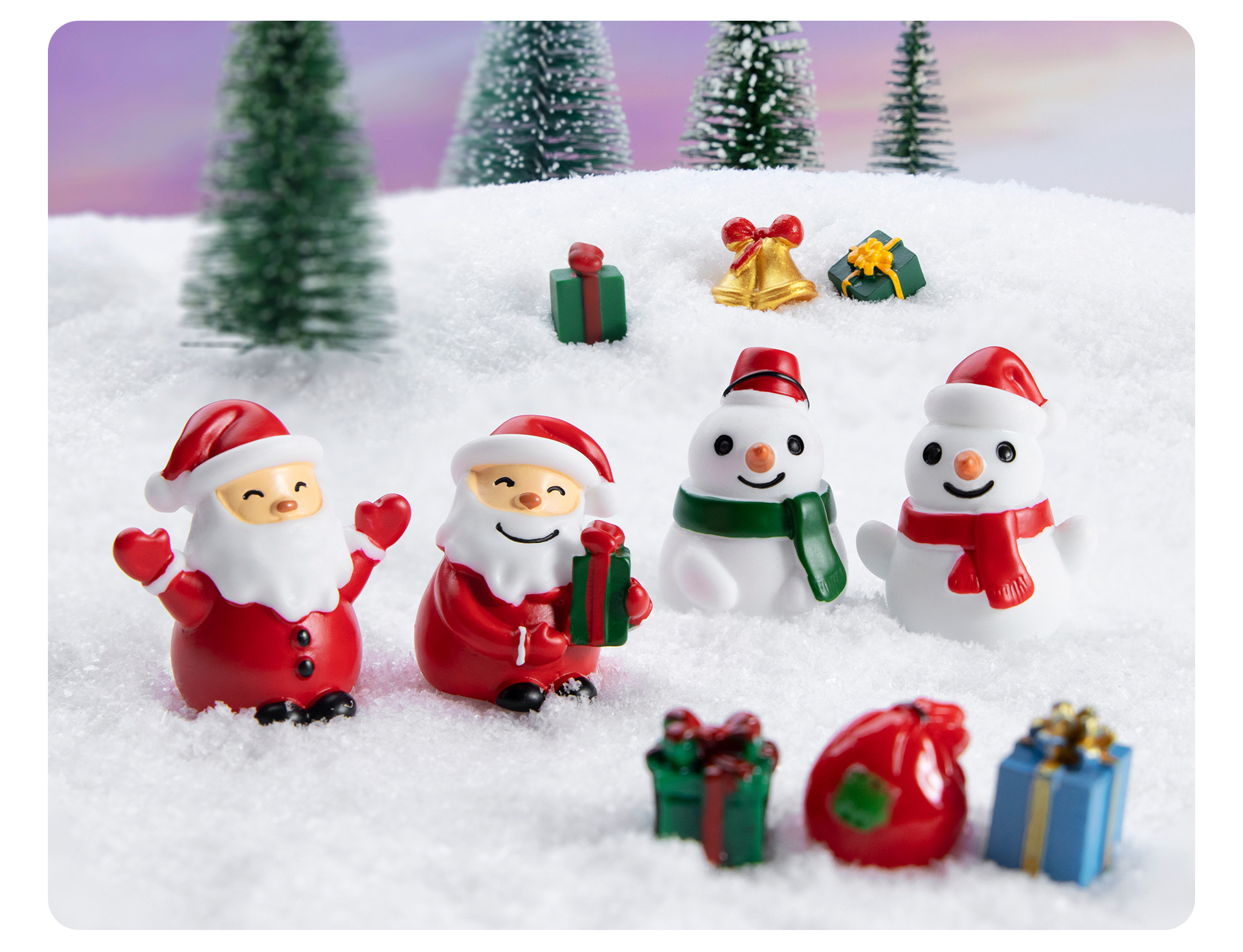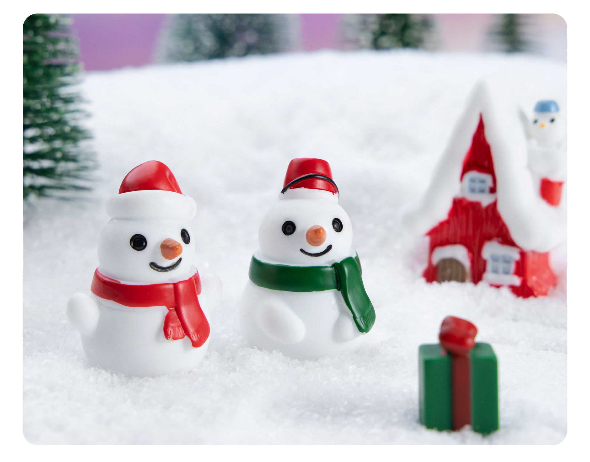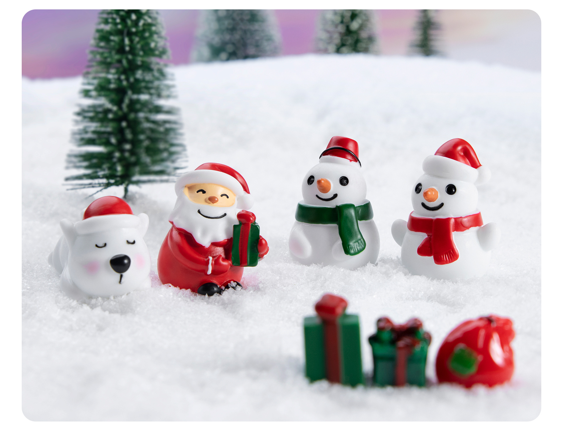 시뮬레이션 산타 클로스 눈사람 녹색 선물 상자 눈 마이크로 풍경 장식품 수지 공예 크리스마스 선물