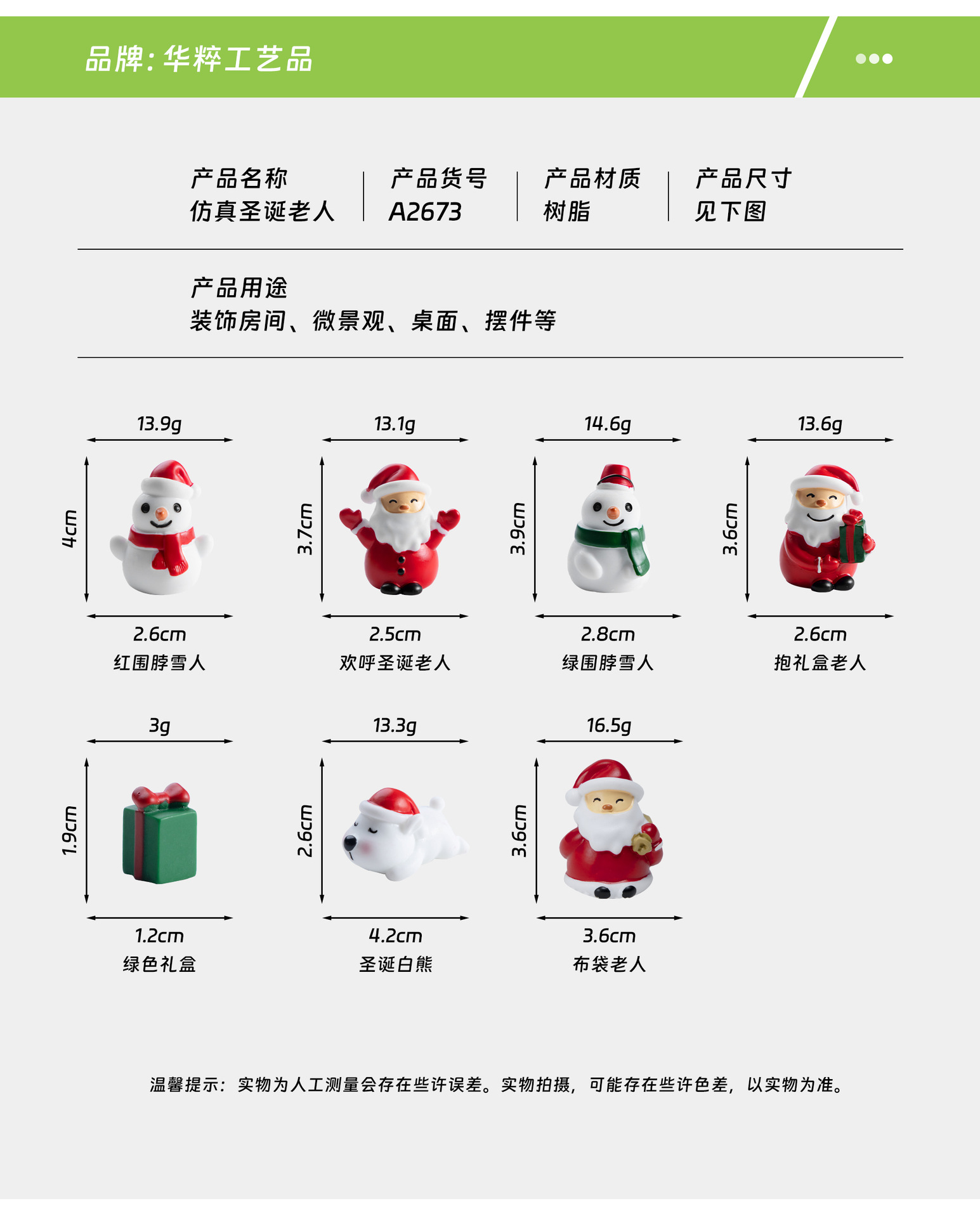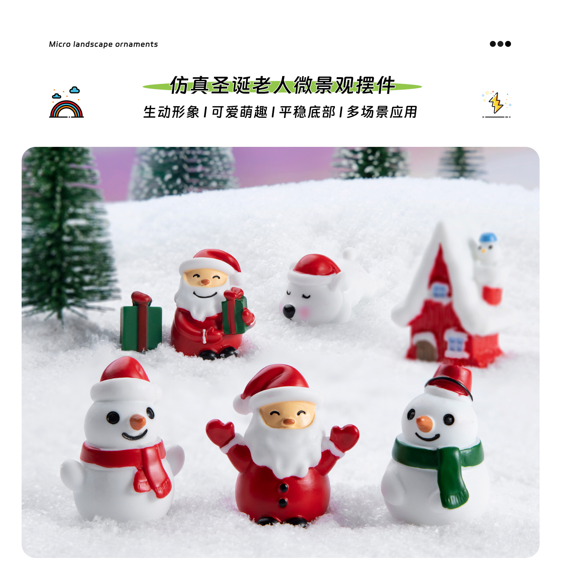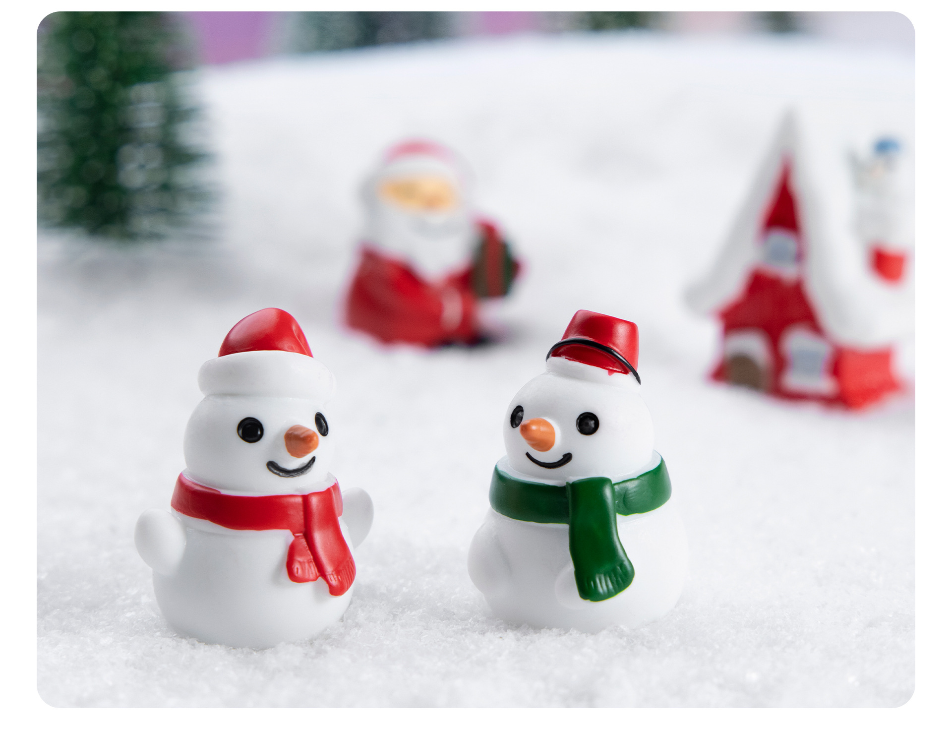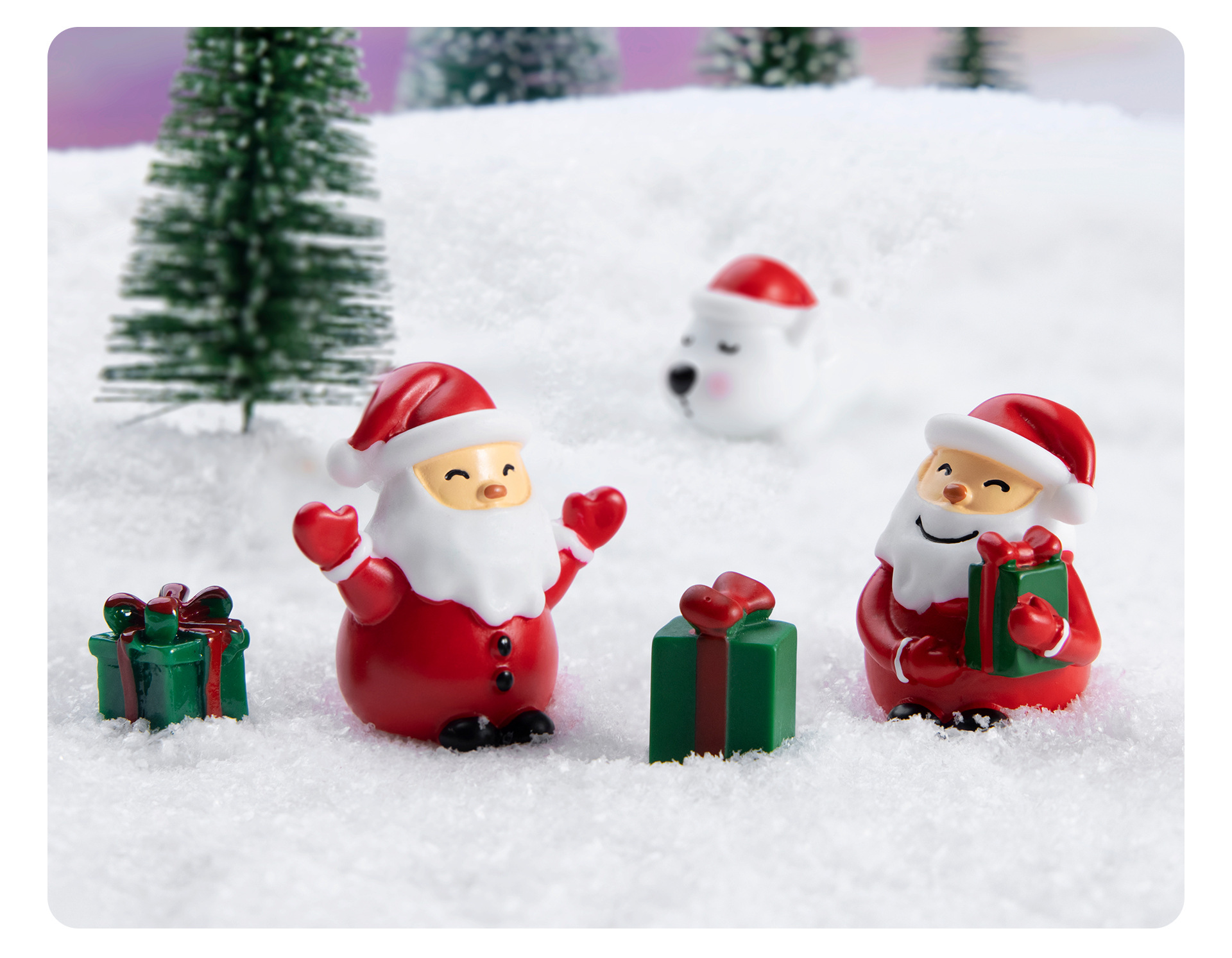 시뮬레이션 산타 클로스 눈사람 녹색 선물 상자 눈 마이크로 풍경 장식품 수지 공예 크리스마스 선물