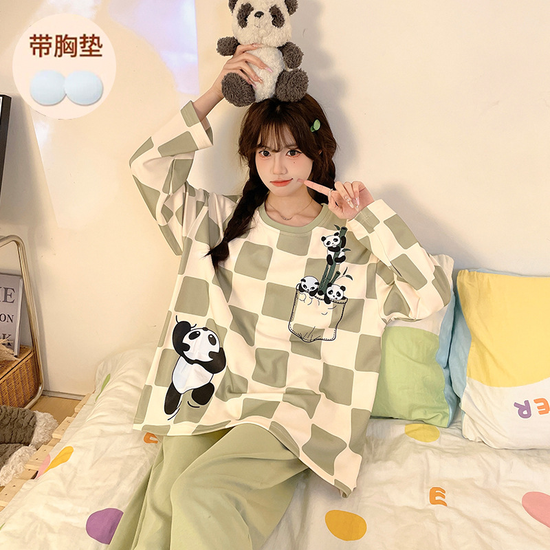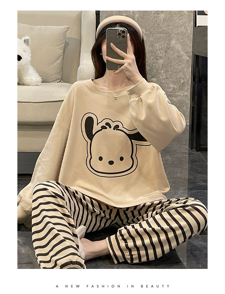 잠옷 여성의 봄과 가을 새로운 폭발 긴 소매 플러스 사이즈 홈 옷 만화 달콤한 소녀의 귀여운 스타일 세트