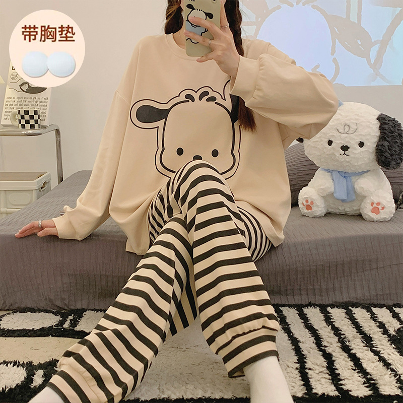 잠옷 여성의 봄과 가을 새로운 폭발 긴 소매 플러스 사이즈 홈 옷 만화 달콤한 소녀의 귀여운 스타일 세트스토어 가기