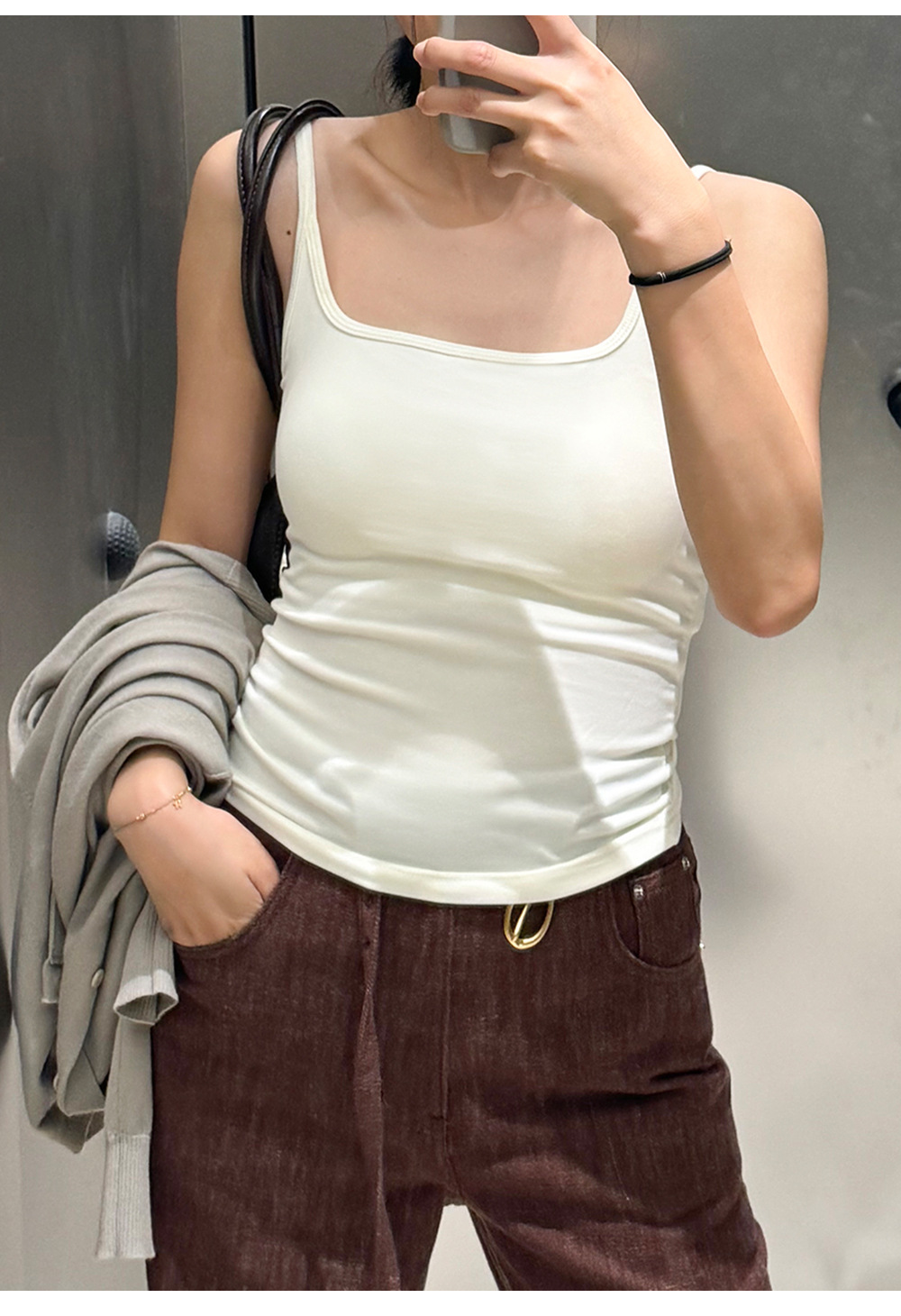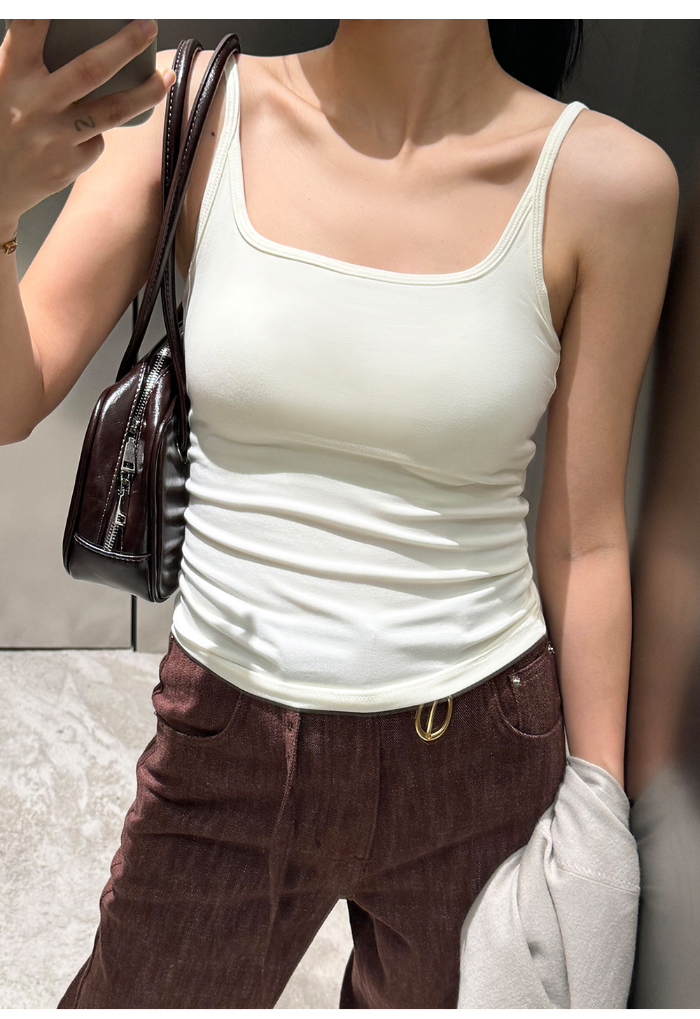 가을과 겨울 따뜻한 벨벳 벨트 가슴 패드 카미 솔 조끼 여성 유행 슬림 핏 스퀘어 칼라 내베이스 민소매 탑