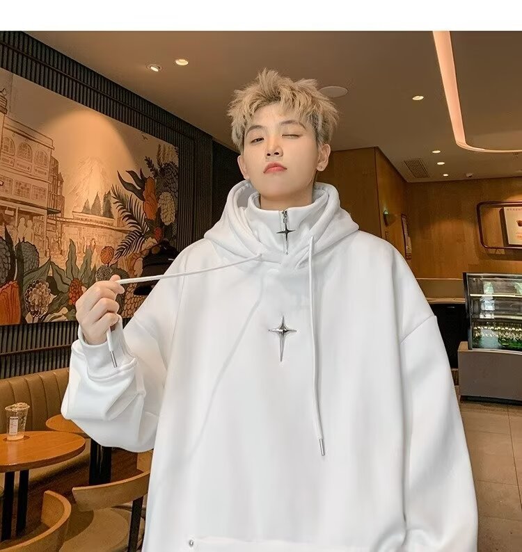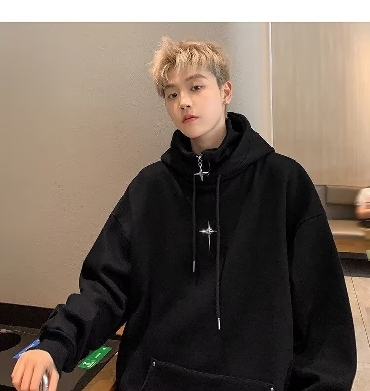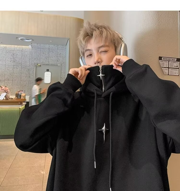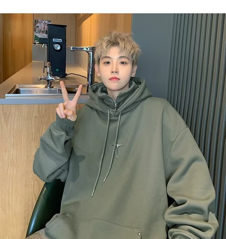 전국 트렌디 하이 칼라 후드 스웨트 셔츠 남자의 겨울 기모 두꺼운 오버 사이즈 루즈 버전 더피 핸즈섬 트렌디 아메리칸 스타일 스웨트 셔츠스토어 가기