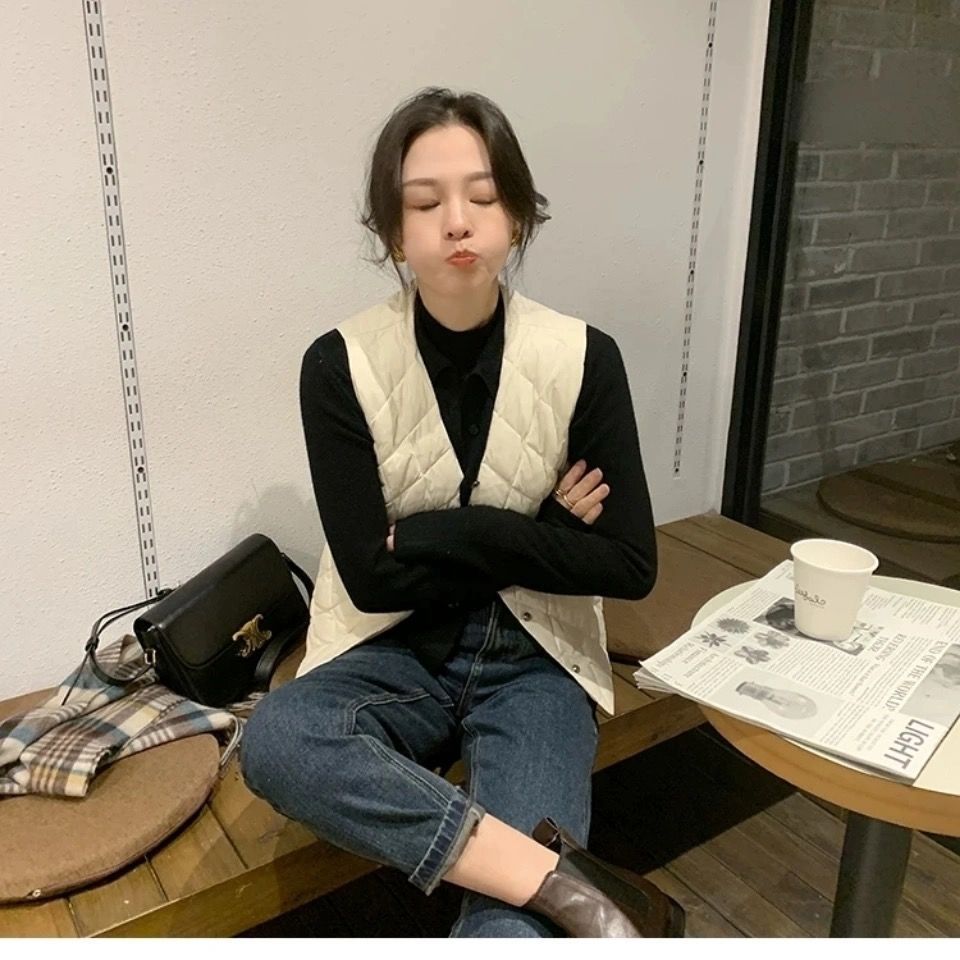 2024 가을과 겨울 경량 다운 면화베이스 조끼 여성 따뜻한 허리 코트 루즈 조끼 여성 외모 조끼스토어 가기